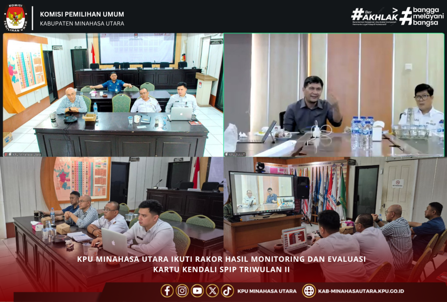 #TemanPemilih, Airmadidi - Komisi Pemilihan Umum (KPU) Kabupaten Minahasa Utara (Minut) mengikuti Rapat Koordinasi Hasil Monitoring dan Evaluasi Kartu Kendali SPIP Triwulan II yang dilaksanakan oleh KPU Provinsi Sulawesi Utara (Sulut) secara daring, Kamis,(9/10/2025). Kegiatan dibuka oleh Sekretaris KPU Sulut, Meidy R.Malonda, beliau memberikan arahan bahwa KPU Kabupaten/Kota harus patuh melaporkan kartu kendali SPIP sesuai dengan waktu yang telah ditentukan dan untuk menindaklanjuti pengisian kartu kendali SPIP, jika didapati kendala, segera dikonsultasikan ke KPU Sulut. Ketua Divisi Hukum dan Pengawasan KPU Sulut, Meidy Tinangon menekankan, sebelum kartu kendali SPIP dikirim, seluruh satgas KPU Kabupaten/Kota harus melakukan rapat pembahasan untuk memastikan ketepatan dan keseregaman data. Selanjutnya, Ketua KPU Sulawesi Utara, Kenly M. Poluan, menyampaikan bahwa pengisian kartu kendali SPIP harus segera diupayakan agar seluruh dokumen dapat dilengkapi dengan baik dan memiliki kualitas yang sesuai standar. Ia menegaskan agar tidak melaporkan dokumen yang tidak sesuai atau tidak diperbarui. Selain itu, Kenly juga berharap para Ketua KPU Kabupaten/Kota dapat melakukan monitoring di satuan kerja masing-masing terkait dengan pelaporan kartu kendali SPIP. Agenda rapat berlanjut dengan pemaparan hasil monitoring dan evaluasi SPIP dari KPU Kabupaten/Kota se-Sulawesi Utara oleh Kabag Teknis Penyelenggaraan dan Hukum KPU Sulut, Carles Worotitjan. Turut hadir dalam rapat ini, Ketua dan Anggota KPU Minut bersama Sekretaris, Kasubag Teknis Penyelenggara dan Parhubmas, serta operator SPIP KPU Minut. #KPUMelayani ....