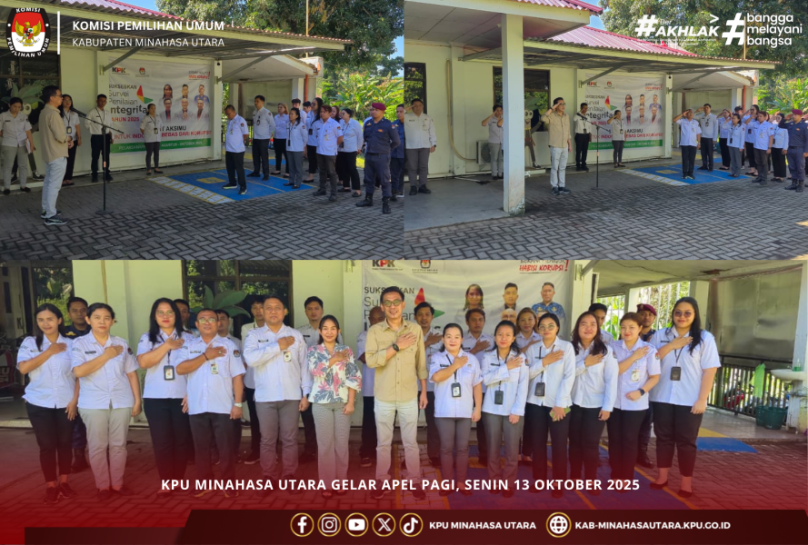 #TemanPemilih, Komisi Pemilihan Umum (KPU) Kabupaten Minahasa Utara melaksanakan kegiatan Apel Pagi rutin pada Senin (13/10/2025) bertempat di Kantor KPU Kabupaten Minahasa Utara. Apel Pagi kali ini dipimpin oleh Ketua Divisi Sosialisasi, Pendidikan Pemilih, Partisipasi Masyarakat dan Sumber Daya Manusia (Sosdiklih Parmas dan SDM) KPU Minahasa Utara, Risky A. Pogaga, yang bertindak sebagai pembina apel. Bertindak sebagai pemimpin upacara, Kasubag Teknis Penyelenggara dan Parhubmas, Fikri Tjikoa. Dalam arahannya, Risky A. Pogaga menekankan pentingnya kekompakan dan koordinasi di lingkungan sekretariat. Ia mengingatkan bahwa seluruh pegawai harus saling bekerja sama dan berkoordinasi dengan baik, terlebih saat ini sekretariat masih menghadapi pemeriksaan dari BPK. Oleh karena itu, semangat kebersamaan dan koordinasi menjadi kunci dalam menjalankan tugas dengan maksimal. Hadir dalam apel ini Ketua Divisi Perencanaan, Data dan Informasi, Ireine Buyung, Sekretaris Ariesto J. Matantu serta pegawai sekretariat KPU Kabupaten Minahasa Utara. #KPUmelayani ....