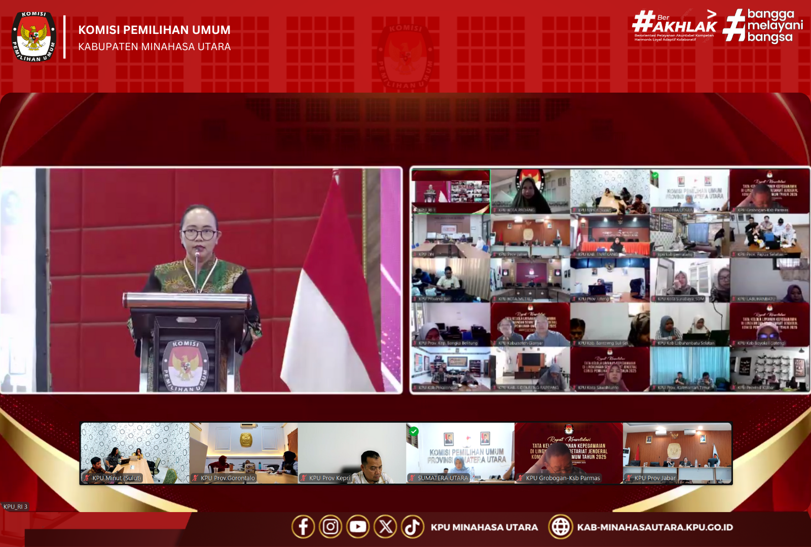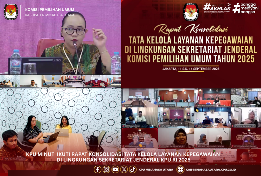 #TemanPemilih, Komisi Pemilihan Umum (KPU) Kabupaten Minahasa Utara mengikuti Rapat Konsolidasi Layanan Tata Kelola Kepegawaian yang diselenggarakan oleh Badan Kepegawaian Negara (BKN) bersama Sekretariat Jenderal KPU Republik Indonesia Tahun 2025. Kegiatan ini dilaksanakan secara daring selama dua hari, 12 - 13 September 2025.