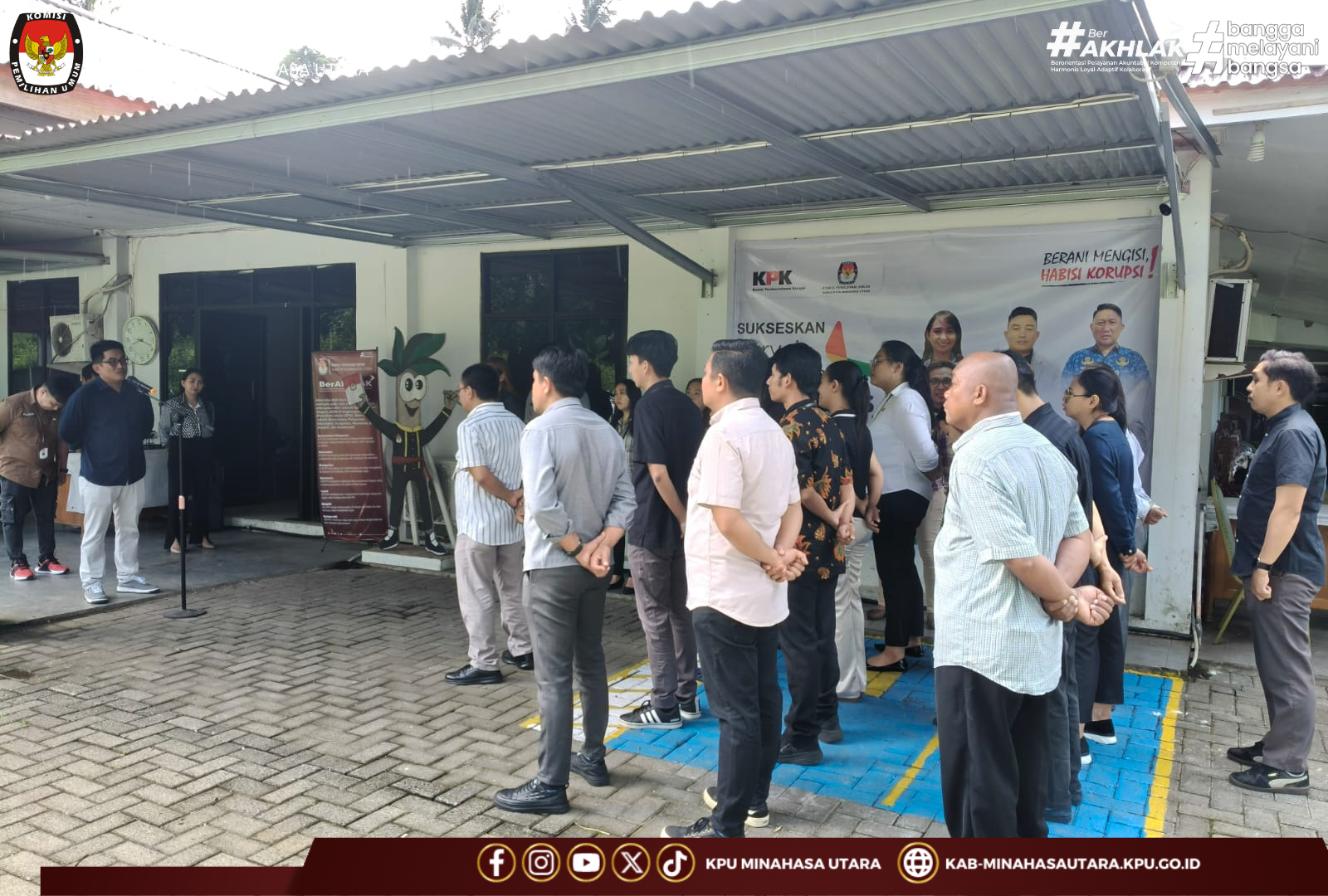 Apel pagi merupakan kegiatan rutin yang dilaksanakan untuk meningkatkan kedisiplinan, semangat kerja, serta koordinasi antarpegawai di lingkungan KPU Kabupaten Minahasa Utara.