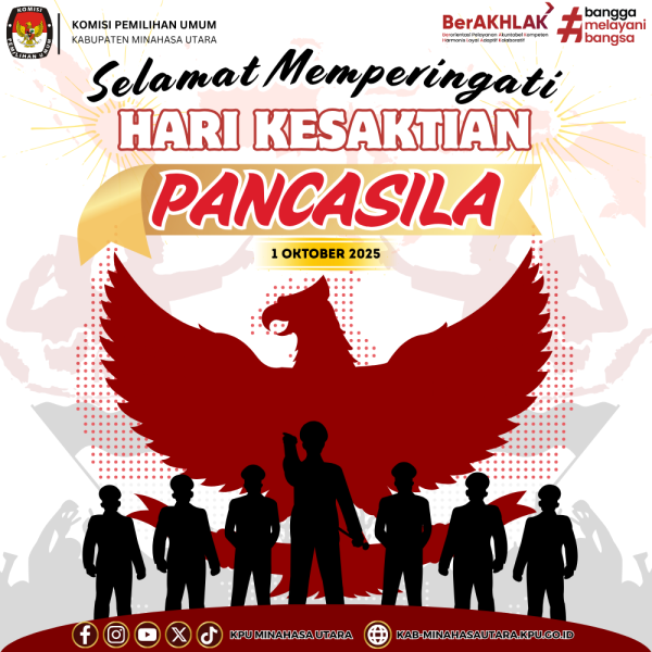 #TemanPemilih - Segenap Keluarga Besar Komisi Pemilihan Umum Kabupaten Minahasa Utara mengucapkan Selamat Memperingati Hari Kesaktian Pancasila, 1 Oktober 2025.