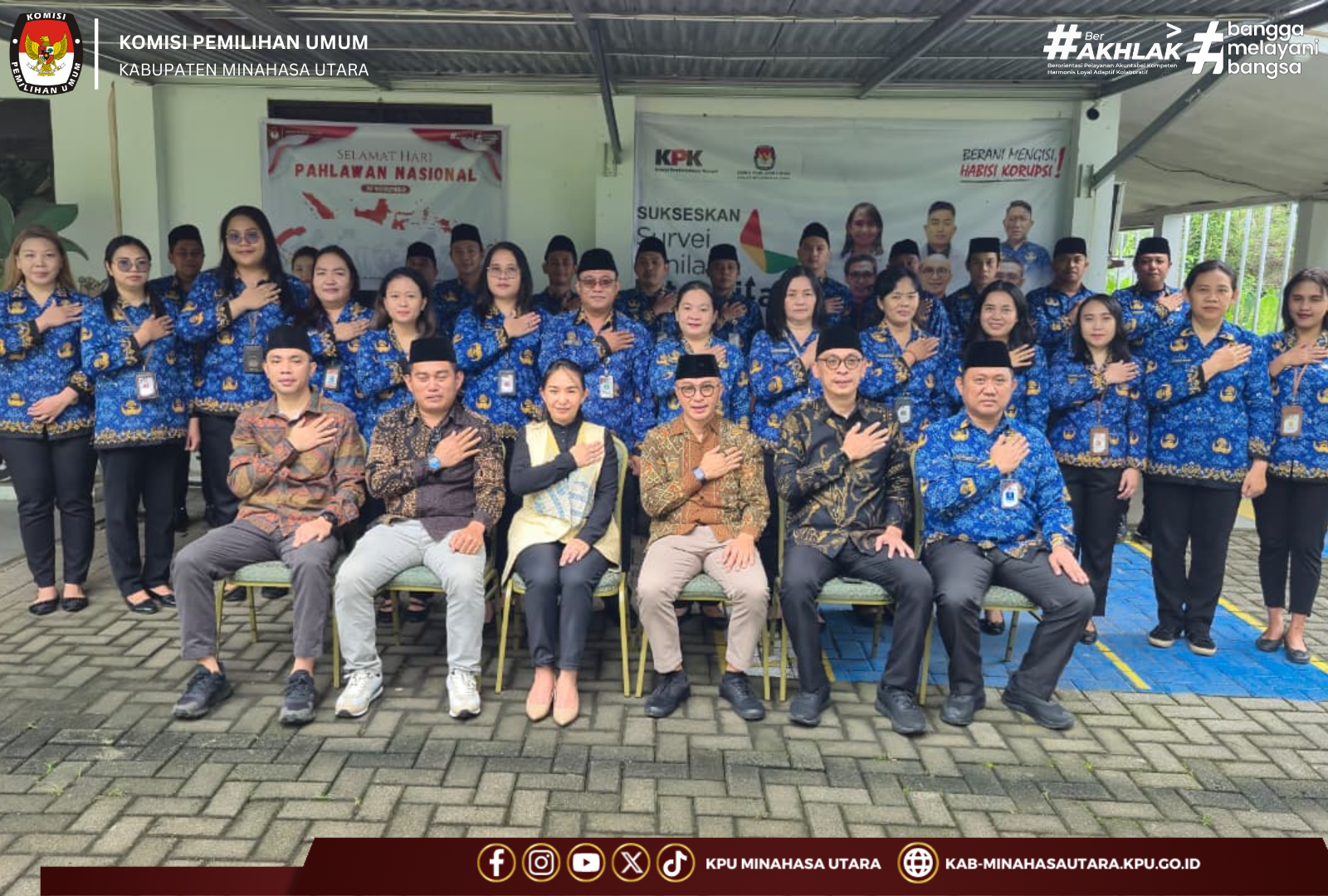Upacara Hari Pahlawan ini diikuti oleh seluruh jajaran Komisioner, Sekretaris, para Kepala Sub Bagian, serta seluruh pegawai di lingkungan KPU Kabupaten Minahasa Utara.