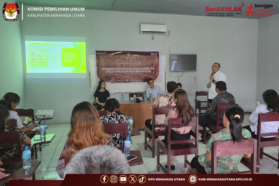 #TemanPemilih, Komisi Pemilihan Umum (KPU) Kabupaten Minahasa Utara melaksanakan kegiatan Sosialisasi Pendidikan Pemilih Pemula di Sekolah Tinggi Alkitab Ginosko, Kamis (4/12/2025). Kegiatan ini merupakan bagian dari komitmen KPU Minut dalam meningkatkan literasi kepemiluan serta mendorong partisipasi aktif pelajar sebagai calon pemilih pada pemilu dan pemilihan mendatang.