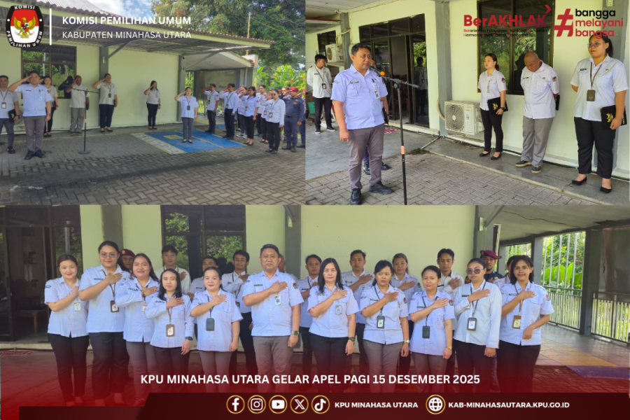 #TemanPemilih, KPU Kabupaten Minahasa Utara (KPU Minut) kembali melaksanakan Apel Pagi pada Senin (15/12/2025) di halaman Kantor KPU Minut.