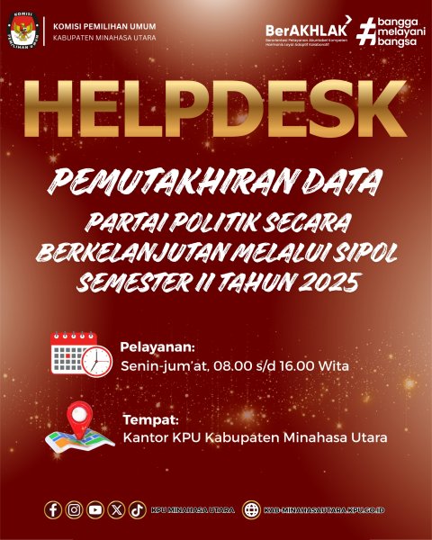 Partai Politik dapat melaksanakan Pemutakhiran Data melalui Sistem Informasi Partai Politik sampai dengan 26 Desember 2025.