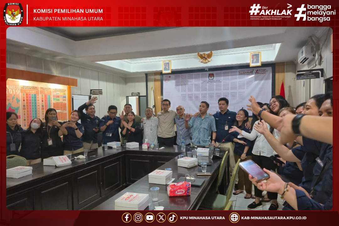 Acara ditutup dengan bernyanyi bersama dan ramah tamah seluruh jajaran KPU Kabupaten Minahasa Utara sebagai wujud kebersamaan serta terjaganya silaturahmi.