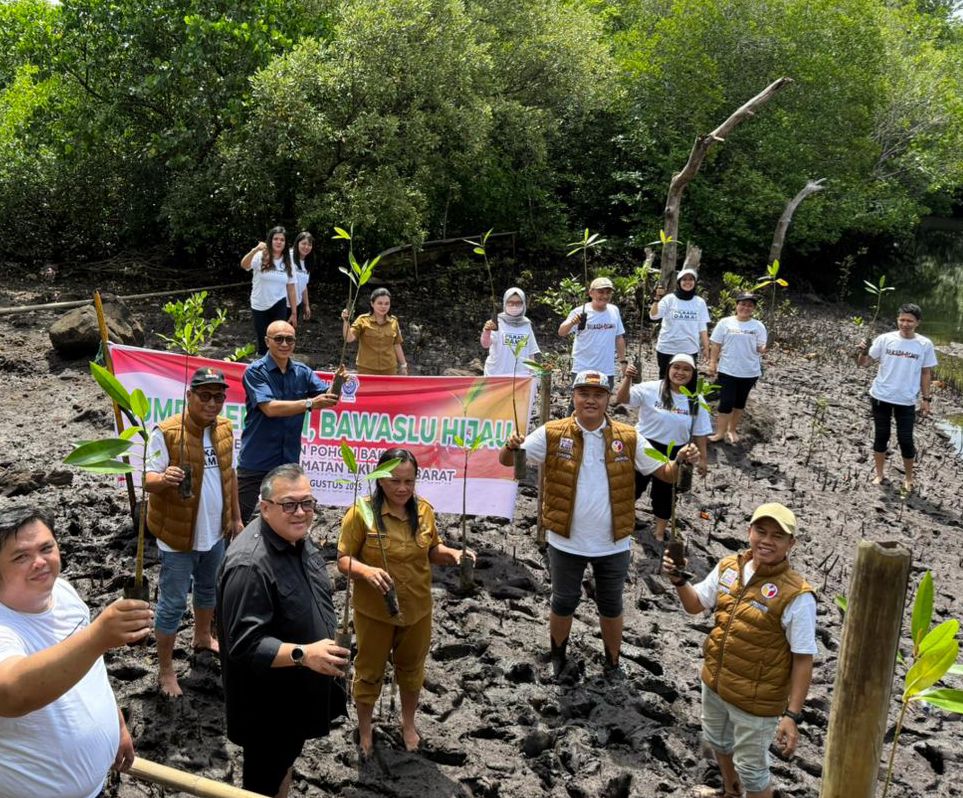 #TemanPemilih - Ketua KPU Kabupaten Minahasa Utara menanam di giat program Jumpa Berlian, Bawaslu Hijau dengan menanam 80 pohon bakau di Desa Sonsilo, Kecamatan Likupang Barat, pada Selasa, (5/8/2025).