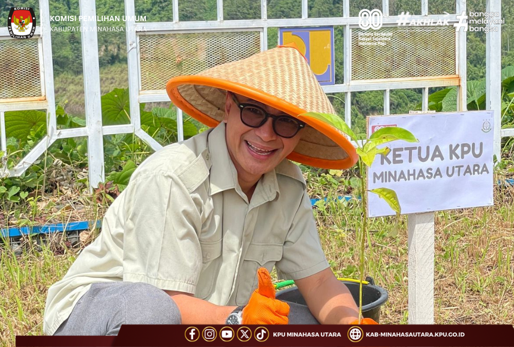 #TemanPemilih - Ketua Komisi Pemilihan Umum (KPU) Kabupaten Minahasa Utara Hendra S. Lumanauw menghadiri dan berpartisipasi dalam kegiatan Aksi Peduli Lingkungan Penanaman Pohon yang diselenggarakan oleh Kejaksaan Negeri Minahasa Utara dalam rangka memperingati Hari Lahir Kejaksaan Republik Indonesia Tahun 2025, Selasa (19/8/2025).