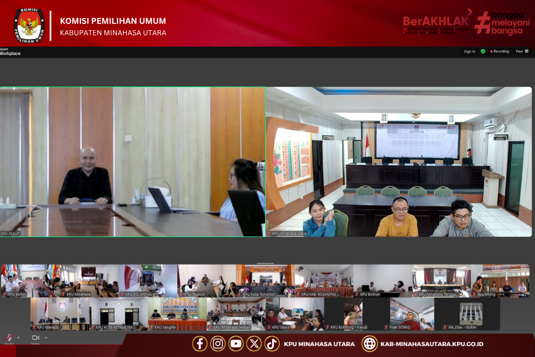 #TemanPemilih, Airmadidi — Komisi Pemilihan Umum Kabupaten Minahasa Utara (KPU Minut) mengikuti Rapat Koordinasi Pengembangan Jaringan Dokumentasi dan Informasi Hukum (JDIH) yang diselenggarakan secara daring oleh Divisi Hukum dan Pengawasan KPU Provinsi Sulawesi Utara, Jumat (1/8/2025).