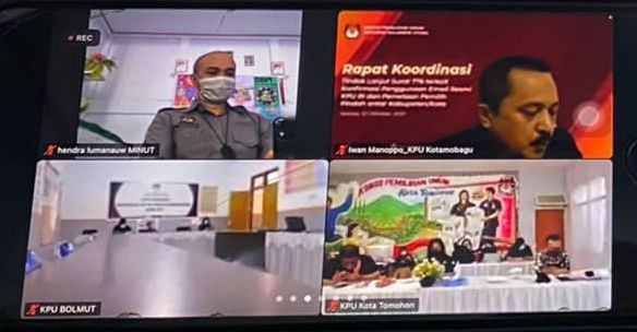Selasa (12/10), Komisi Pemilihan Umum (KPU) Minahasa Utara (Minut) menghadiri Rapat Koordinasi Tindak Lanjut Surat 776 terkait Konfirmasi Penggunaan Email Resmi KPU RI dan Pemetaan Pemilih Pindahan antar Kabupaten/Kota sesuai surat undangan KPU Provinsi Nomor 384/TIK.02/71/2021 yang diikuti oleh Ketua KPU Minut Hendra Lumanauw, Kadiv Perencanaan, Data dan Informasi Dikson Lahope, Sekretaris Winda Tulangow, Kasubag Program dan Data Yulia Widiastuti dan Operator SIDALIH Untari Rani serta Jenrico Hakim.