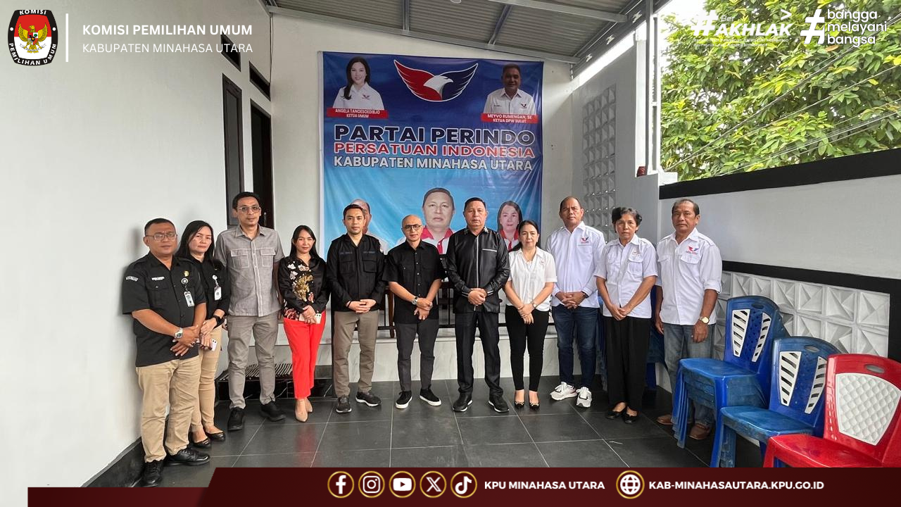 Kehadiran KPU Minut disambut hangat oleh jajaran pengurus DPD Partai Perindo Minahasa Utara, yakni Ketua Anthoni Pusung, Sekretaris Lidia Linda Akaij dan Bendahara Decky Kantale serta jajaran. Sekretariat KPU Minut ikut mendampingi diantaranya Kasubbag Teknis dan Parhubmas Fikri Tjikoa, Kasubbag Hukum dan SDM Jeane Mondoringin, serta beberapa staf sekretariat.