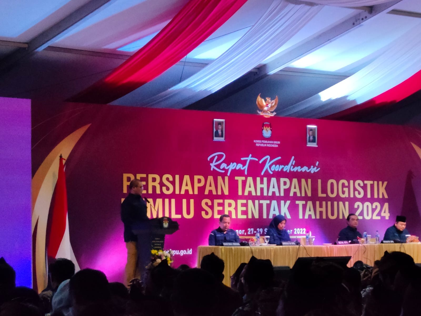 KPU Kabupaten Minahasa Utara mengikuti Rapat Koordinasi Persiapan Tahapan Logistik Pemilu Serentak Tahun 2024 di Bogor, Jawa Barat. Rapat Koordinasi ini mulai dilaksanakan sejak 27 s.d. 29 September 2022 dan dibuka oleh Ketua KPU RI, Hasyim Asy'ari. Dalam rapat ini pula, ada beberapa hal yang disampaikan terkait persiapan Logistik yang disampaikan oleh Ketua Divisi Perencanaan, Keuangan, Umum, Rumah Tangga dan Logistik KPU RI, Yulianto Sudrajat. Hal yang disampaikan diantaranya skema atau rencana untuk pelipatan suara yang tidak lagi dilakukan di masing-masing kabupaten/kota, kerjasama dengan TNI dan Polri dalam pengamanan logistik, pembahasan Daftar Inventaris Masalah Logistik (DIM Logistik), pembuatan PKPU terbaru terkait logistik demi kepastian hukum, serta mekanisme efektivitas dan efisiensi dari segi waktu, jenis, dan sasaran logistik. Dalam kesempatan yang sama, Sekjen KPU RI, Bernad Darmawan Sutrisno juga menyampaikan bahwa solidaritas tim dalam melaksanakan pengadaan dan distribusi logistik berperan penting. Untuk menunjang hal tersebut, akan diusahakan pemberian mobil logistik diluar mobil operasional sebagai dukungan bagi suskesnya distribusi logistik. Hal lainnya yang sedang dibahas adalah pengadaan surat suara yang akan dilakukan secara berjenjang, dimana surat suara DPD, DPRD Provinsi, dan DPRD Kabupaten/Kota dilakukan oleh KPU Provinsi. Selanjutnya, KPU RI sedang melakukan pembahasa untuk pengajuan Perppu untuk dapat mengadakan distribusi logistik agar tidak mengikat di hari kampanye. Rapat koordinasi ini diharapkan menjadi langkah awal dalam rangka menjaga soliditas dan persepsi yang sama dalam menyiapkan logistik Pemilu Tahun 2024. Bernad menegaskan bahwa perencanaan sejak awal harus benar-benar dilakukan secara matang. Hal ini juga yang menjadi fokus Setjen yakni ketersediaan SDM yang mumpuni. Untuk menujang hal tersebut, direncakakan akan dibuka formasi PPPK di lingkungan sekretariat KPU se-Indonesia.