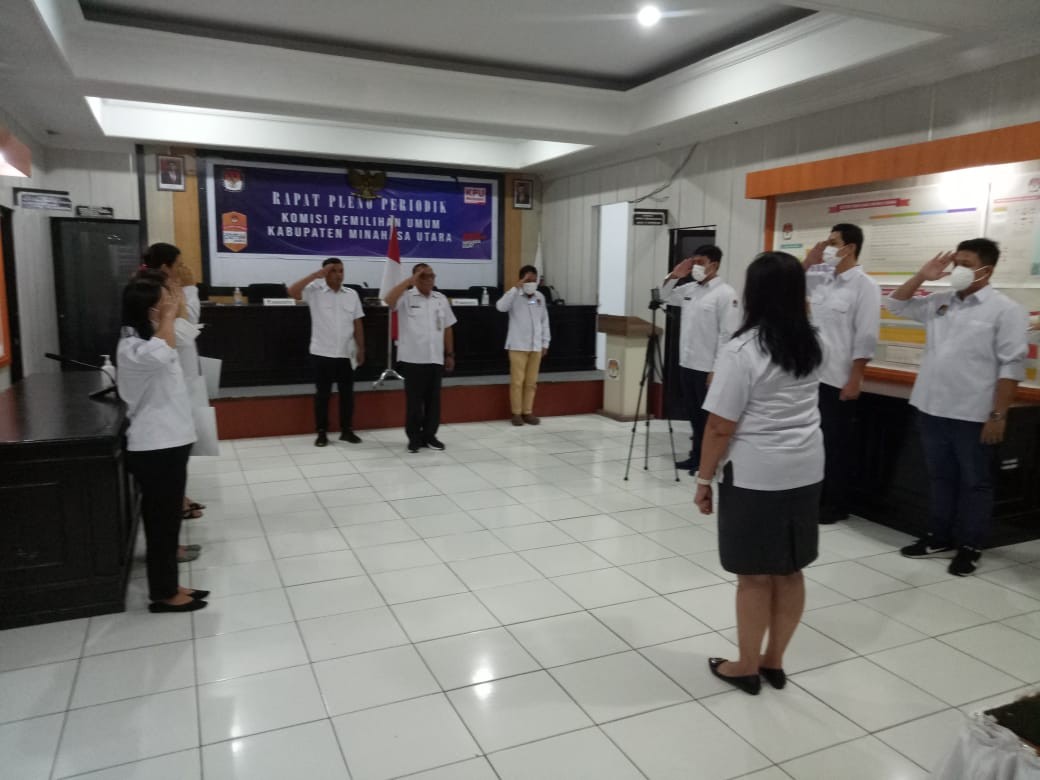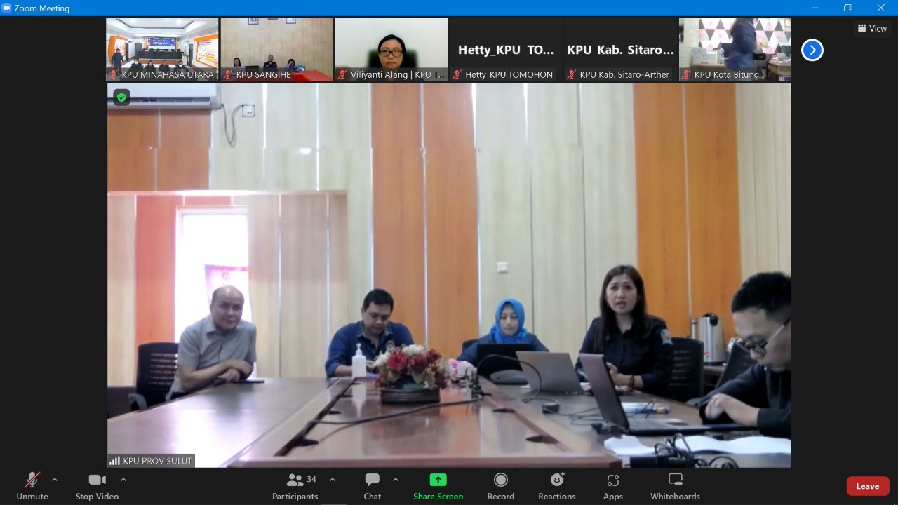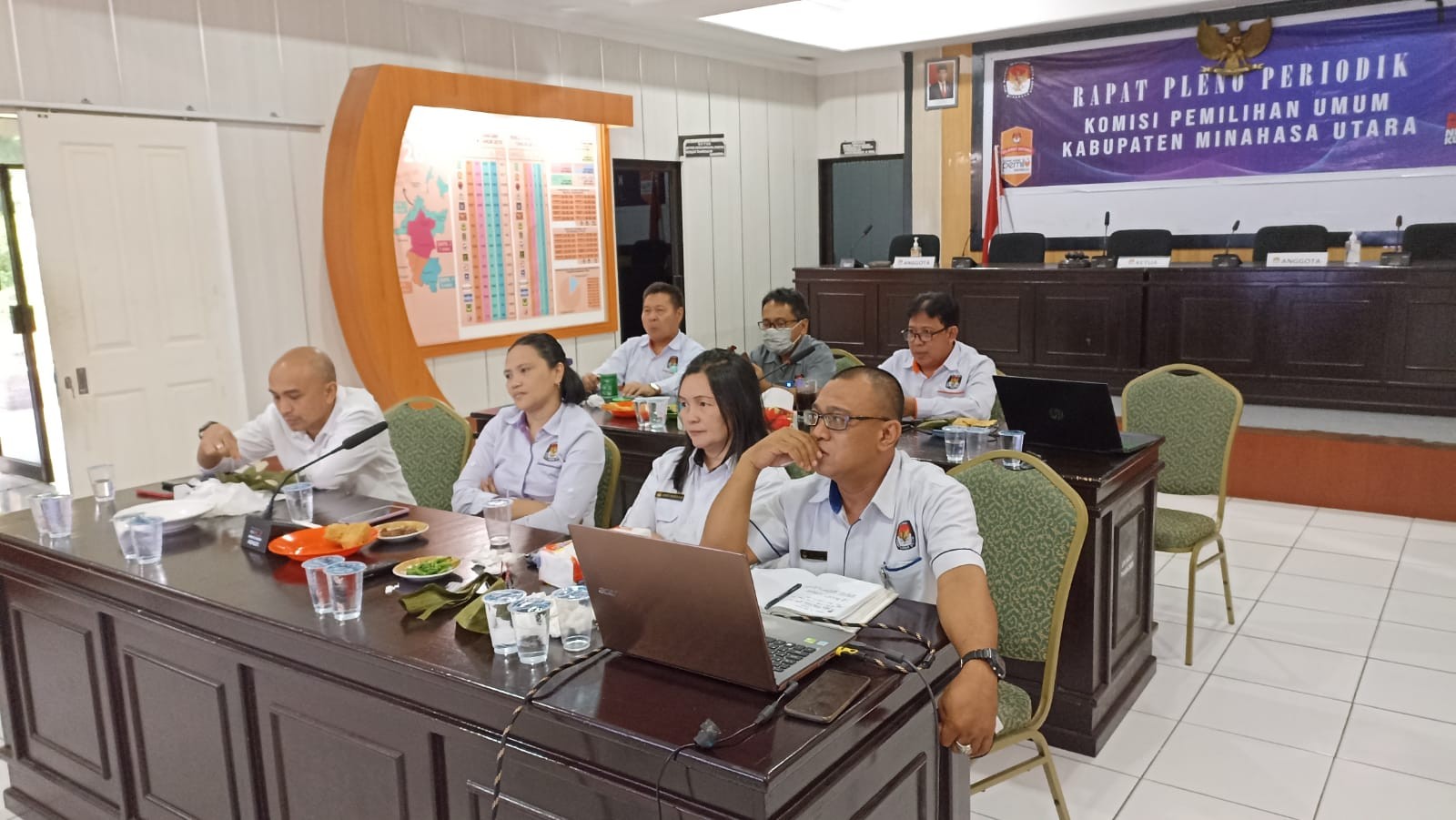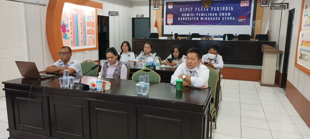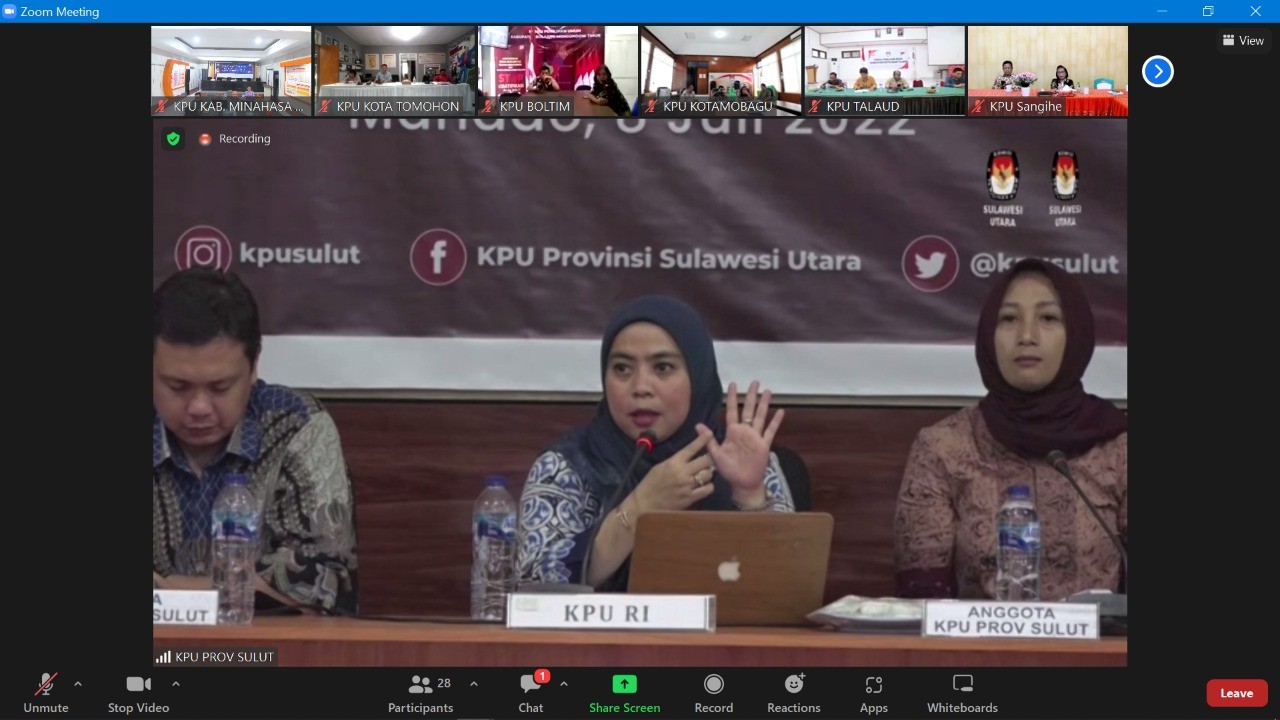 Airmadidi, KPU Kabupaten Minahasa Utara (KPU Minut) Mengikuti Webinar Tahapan Pemilu Serentak 2024 yang diselenggarakan oleh KPU Provinsi Sulawesi Utara (KPU Sulut) pada hari Senin (18/7). Kegiatan webinar dilakukan secara daring melalui Live Streaming di Kanal Youtube KPU Sulut dan Zoom Meeting. Webinar diikuti oleh Ketua dan Anggota KPU Minut, Plt. Sekretaris KPU Minut dan Seluruh Kasubbag KPU Minut. Webinar dibuka oleh Salman Saelangi, Anggota KPU Sulut. Salman menyampaikan bahwa tahapan pemilu sudah dimulai sejak 14 Juni 2022 yang lalu dan dalam pelaksanaannya KPU sebagai penyelenggara tidak dapat melakukannya sendiri tetapi perlu ada dukungan dari Stakeholder baik secara politik dan moril untuk kembali bersama menyukseskan penyelenggaraan pemilu kedepan. Webinar ini mengusung tema “Peran Pemerintah Dalam Tahapan Pemilu Serentak Tahun 2024” dengan Narasumbernya yakni Ferry Sangian, Kepala Bagian Kesbangpol Sulawesi Utara dan Moderator Stenly Kowaas, Komisioner KPU Tomohon. Yang menjadi peserta kegiatan yakni KPU Se Sulut dan juga Forkopimda Provinsi Sulut.
