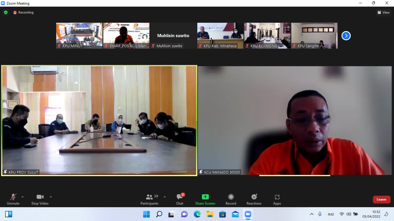 KPU Minahasa Utara Mengikuti Rapat Koordinasi Kesiapan Pelaksanaan PKS ( Perjanjian Kerjasama) dengan PT. POS Indonesia cabang manado, yang diselenggarakan oleh Komisi Pemilihan Umum Provinsi Sulawesi Utara, Selasa 5 April 2022. Rakor ini diadakan secara daring dan diikuti oleh Ketua KPU Kabupaten/Kota se Sulawesi Utara dan kepala subbagian Keuangan Umum Logistik dari masing- masing Kpu Kabupaten/Kota. Untuk KPU Minut sendiri diikuti oleh Hendra Lumanauw, MA selaku Ketua Divisi Keuangan Umum Logistik dan Inri Naomi Nangka, S.I.P selaku kepala subbagian Keuangan Umum Logistik. Rakor ini dibuka oleh Kadiv Perencanaan data dan Informasi Provinsi Sulawesi Utara Ibu Lanny Ointu, dalam arahannya Ibu lanny menyarankan agar dalam rakor ini seluruh KPU Kabupaten Kota dapat menyepakati kerjasama berkaitan dengan Kesiapan Pemilu dan Pilkada 2024 dengan PT. POS Indonesia. PT. POS Indonesia sebagai Narasumber dibawakan oleh Bpk. Alex selaku General Manager Di KCU Manado menyampaikan PT. POS Indonesia Akan Bersilaturahmi ke KPU Kab Kota di Sulawesi Utara Terkait Distribusi Pemilu 2024 sesuai dengan syarat dan ketentuan yang berlaku, PT POS Indonesia juga sudah menyatakan kesiapan dalam Pemilu baik dalam pengiriman dokumen dan Logistik, PT POS Indonesia Menyatakan kesediaan juga Dalam Jasa Keuangan karena Seluruh Kabupaten di Sulawesi Utara sudah memiliki Kantor POS masing-masing, dan PT POS memiliki layanan Mobile (POST PAY) dalam bentuk digital yang bisa digunakan dalam pengiriman dana ataupun pembayaran kepada Badan ADHOC. Rakor ini ditutup oleh Katua KPU Provinsi Sulawesi Utara, Bpk. Ardiles Mewoh, yang menyampaikan Terima Kasih kepada PT. POS Indonesia yang sudah memberikan Fasilitas yang dapat dimanfaatkan oleh kita sebagai penyelenggara Pemilu, dan KPU juga akan sama sama menyepakati kerjasama Pemilu yang akan di fasilitasi oleh PT. POS Indonesia, dan KPU Se Sulawesi Utara agar menetapkan kesiapan – kesiapan untuk penandatanganan PKS.