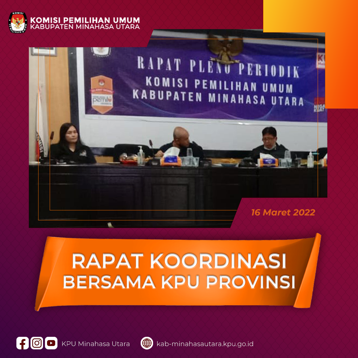 Airmadidi, Rabu (16/3) Komisi Pemilihan Umum Kabupaten Minahasa Utara (KPU Minut) mengikuti Rapat Koordinasi (rakor) yang digelar oleh KPU Provinsi Sulawesi Utara (KPU Sulut). Hadir dalam rakor Anggota KPU Sulut yakni Lanny Ointu Kadiv Perencanaan, Data dan Informasi, Meidy Tinangon Kadiv Hukum dan Pengawasan dan Salman Saelangi Kadiv Sosparmas dan SDM. Kehadiran KPU Minut diwakili oleh Ketua KPU Minut Hendra Lumanauw, Anggota KPU Minut Darul halim Kadiv Sosparmas dan SDM dan Jeane Mondoringin selaku Kasubag Teknis dan Hubmas. Rakor ini dimaksudkan untuk membahas persiapan dan kesiapan dari lokus program desa peduli pemilu dan pemilihan yang sebelumnya telah ditetapkan di tahun 2021 yang kemudian dilanjutkan dengan pembahasan Pencermatan Draft PKPU Partisipasi Masyarakat Dalam penyelenggaraan Pemilihan Umum Dan Pemilihan. Dalam pencermatan Draft PKPU ini setiap kabupaten/kota yang hadir menyampaikan hasil pencermatannya guna menyempurnakan Draft PKPU tersebut. KPU Kab/Kota menyampaikan pencermatannya kepada KPU Provinsi sebagai bahan masukan kepada KPU RI dalam penempurnaan Draft PKPU sebelum ditetapkan menjadi PKPU.