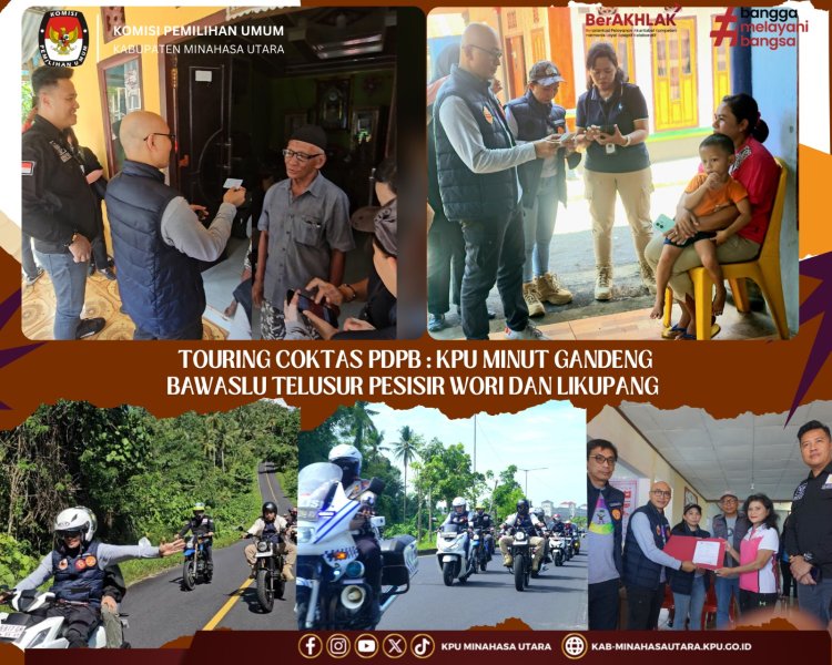 KPU Minahasa Utara menggelar Touring Coklit Terbatas (Coktas) sebagai tindak lanjut amanat PKPU Nomor 1 Tahun 2025 tentang Pemutakhiran Data Pemilih Berkelanjutan dengan turun lapangan ke kantor Kecamatan dan mendatangi rumah pemilih untuk dilakukan verifikasi data meninggal di Kecamatan Wori, Likupang Barat dan Likupang Timur, Jumat (18/07/2025) untuk mendapatkan data pemilih yang valid.