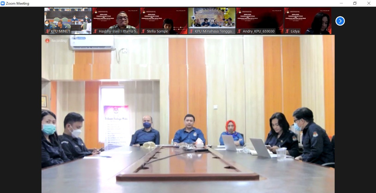 Airmadidi, Kab-MinahasaUtara.kpu.go.id — Komisi Pemilihan Umum Kabupaten Minahasa Utara (KPU Minut) menggelar Internalisasi Produk Hukum PKPU 5 Tahun 2021 tentang Sistem Pemerintahan Berbasis Elekronik Komisi Pemilihan Umim, Kamis (16/6/2021). Kegiatan Internalisasi ini diadakan secara Daring bagi peserta yang bekerja dari rumah dan secara Luring bagi peserta yang bekerja di Kantor. Ketua KPU Minut, Hendra S. Lumanauw, MA dalam sambutannya menjelaskan bahwa yang melatar belakangi giat internalisasi ini adalah untuk memberikan pemahaman secara komprehensif terhadap PKPU yang baru terbit kepada seluruh jajaran KPU Minut. “Seperti kita ketahui bersama, PKPU 5 TAHUN 2021 diterbitkan untuk mewujudkan tata kelola pemerintahan yang bersih, efektif, transparan, dan akuntabel, serta pelayanan publik yang berkualitas dan terpercaya di lingkungan KPU,” ujar Hendra Lumanauw Ia berharap, melalui kegiatan internalisasi ini, jajaran KPU Minut boleh memahami secara keseluruhan terkait regulasi yang baru terbit ini. Adapun dalam internalisasi ini, bertindak sebagai narasumber yaitu Raymond Mamahit selaku Kepala Bagian Perencanaan, Data, Organisasi dan SDM KPU Prov.Sulut sekaligus mewakili Kadiv Perencanaan, Data dan Informasi KPU Prov. Sulut Ibu Lanny Ointu, SE. Sedangkan Moderator dalam internalisasi ini adalah Kepala Subbagian Hukum, Fikri Tjikoa, SE, M.Si. Dalam internalisasi tersebut, turut hadir Ketua Divisi Perencanaan, Data dan Informasi, Drs. Dikson Lahope, Ketua Divisi Sosialisasi, Pendidikan Pemilih, Parmas & SDM, Darul Halim, SH, dan Ketua Divisi Teknis, Stella Runtu serta seluruh jajaran Sekretariat KPU Kabupaten Minahasa Utara Airmadidi, Kab-MinahasaUtara.kpu.go.id — Komisi Pemilihan Umum Kabupaten Minahasa Utara (KPU Minut) menggelar Internalisasi Produk Hukum PKPU 5 Tahun 2021 tentang Sistem Pemerintahan Berbasis Elekronik Komisi Pemilihan Umim, Kamis (16/6/2021). Kegiatan Internalisasi ini diadakan secara Daring bagi peserta yang bekerja dari rumah dan secara Luring bagi peserta yang bekerja di Kantor. Ketua KPU Minut, Hendra S. Lumanauw, MA dalam sambutannya menjelaskan bahwa yang melatar belakangi giat internalisasi ini adalah untuk memberikan pemahaman secara komprehensif terhadap PKPU yang baru terbit kepada seluruh jajaran KPU Minut. “Seperti kita ketahui bersama, PKPU 5 TAHUN 2021 diterbitkan untuk mewujudkan tata kelola pemerintahan yang bersih, efektif, transparan, dan akuntabel, serta pelayanan publik yang berkualitas dan terpercaya di lingkungan KPU,” ujar Hendra Lumanauw Ia berharap, melalui kegiatan internalisasi ini, jajaran KPU Minut boleh memahami secara keseluruhan terkait regulasi yang baru terbit ini. Adapun dalam internalisasi ini, bertindak sebagai narasumber yaitu Raymond Mamahit selaku Kepala Bagian Perencanaan, Data, Organisasi dan SDM KPU Prov.Sulut sekaligus mewakili Kadiv Perencanaan, Data dan Informasi KPU Prov. Sulut Ibu Lanny Ointu, SE. Sedangkan Moderator dalam internalisasi ini adalah Kepala Subbagian Hukum, Fikri Tjikoa, SE, M.Si. Dalam internalisasi tersebut, turut hadir Ketua Divisi Perencanaan, Data dan Informasi, Drs. Dikson Lahope, Ketua Divisi Sosialisasi, Pendidikan Pemilih, Parmas & SDM, Darul Halim, SH, dan Ketua Divisi Teknis, Stella Runtu serta seluruh jajaran Sekretariat KPU Kabupaten Minahasa Utara