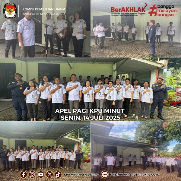 Komisi Pemilihan Umum Kabupaten Minahasa Utara (KPU Minut) mengadakan apel pagi pada hari Senin (14/07/2025) yang berlangsung di halaman kantor KPU.
