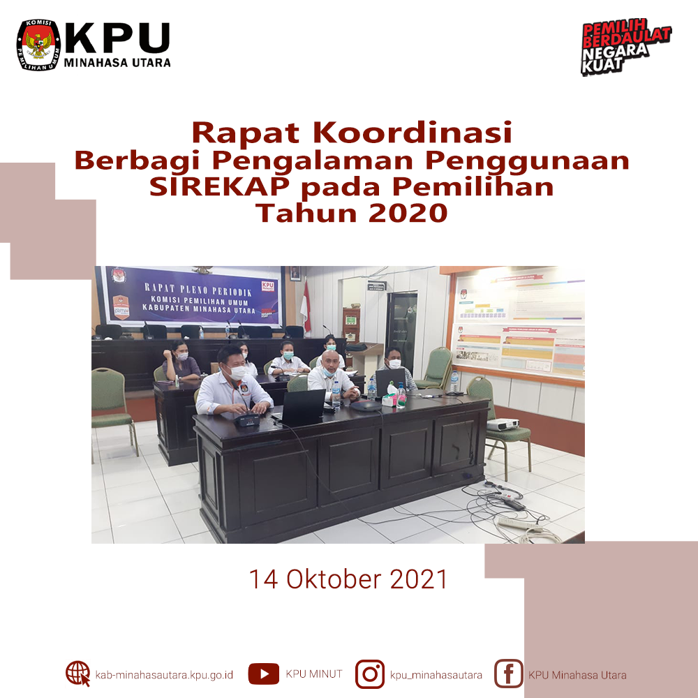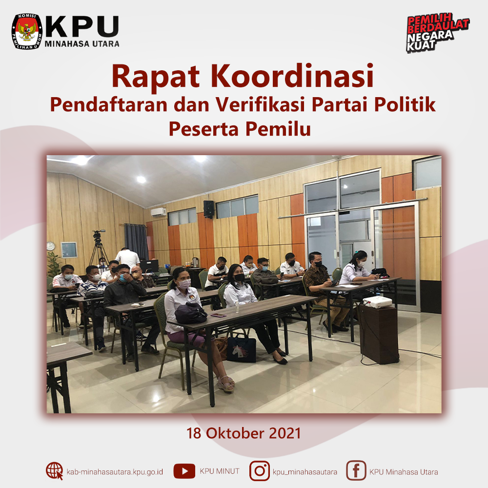 Selasa (12/10), Komisi Pemilihan Umum (KPU) Minahasa Utara (Minut) menghadiri Rapat Koordinasi Tindak Lanjut Surat 776 terkait Konfirmasi Penggunaan Email Resmi KPU RI dan Pemetaan Pemilih Pindahan antar Kabupaten/Kota sesuai surat undangan KPU Provinsi Nomor 384/TIK.02/71/2021 yang diikuti oleh Ketua KPU Minut Hendra Lumanauw, Kadiv Perencanaan, Data dan Informasi Dikson Lahope, Sekretaris Winda Tulangow, Kasubag Program dan Data Yulia Widiastuti dan Operator SIDALIH Untari Rani serta Jenrico Hakim.