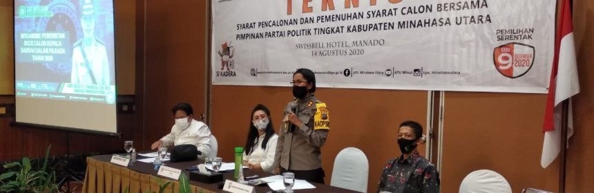KPU Kabupaten Minahasa Utara (KPU Minut) menggelar kembali Rapat Koordinasi bersama Partai Politik tingkat Kabupaten Minahasa pada Jumat (15/8) di Swissbel-Hotel Maleosan Manado. Rapat Koordinasi dengan Tema “Syarat Pencalonan dan Pemenuhan Syarat Calon Bersama Pimpinan Politik Tingkat Kabupaten Minahasa Utara” diisi oleh pemateri yang berasal dari tiga instansi pemerintahan yang akan bersinggungan langsung dengan syarat calon. Pemateri pertama diisi oleh AKBP Grace Rahakbau, Kapolres Minahasa Utara yang membahas terkait Mekanisme Penerbitan SKCK Calon Kepala Daerah dalam Pilkada Tahun 2020. Topik ini menjadi penting, karena SKCK memegang peranan penting sebagai salah satu persyaratan calon yang harus diserahkan pada saat pendaftaran calon. Grace mengatakan bahwa dalam waktu dekat ini akan diluncurkan SKCK online di Minahasa Utara, agar memudahkan masyarakat pada umumnya untuk dapat mengurus SKCK, termasuk bagi para bakal calon. Namun hal itu perlu diurus dengan membawa beberapa persyaratan, diantaranya KTP, Formulir, dan juga Pas Foto berlatar belakang merah. Pemateri kedua adalah H. Mohamad Sholeh, S.H., M.H, selaku Ketua Pengadilan Airmadidi. Pengadilan juga memiliki peran yang penting karena beberapa persyaratan bakal calon akan dikeluarkan oleh Pengadilan Negeri. Dalam penjelasannya, Sholeh sekaligus mempromosikan aplikasi aSiap 12 yang merupakan aplikasi pengurusan administrasi dan dokumen pengadilan yang dapat dilakukan secara online. Dokumen yang diterbitkan oleh Pengadilan adalah surat keterangan tidak sedang memiliki tanggungan utang secara perseorangan dan/atau secara badan hukum yang menjadi tanggung jawabnya yang merugikan keuangan negara dan juga surat keterangan terkait status terpidana jika calon pernah dipidana. Nantinya jika telah mengisi formulir dan telah mengunggah dokumen yang diperlukan, dokumen dapat diambil keesokan harinya. Pemateri ketiga adalah Olfy Kalengkongan, S.Pd,M.M.Pd, selaku Kepala Dinas Pendidikan Kabupaten Minahasa Utara. Kadis Pendidikan tersebut membawakan materi terkait Legalitas Ijazah Bakal Calon yang menjelaskan terkait pengurusan legalisasi ijazah sesuai dengan jenjang, persoalan, dan mekanisme yang harus ditempuh berdasarkan persoalan yang ada. Beliau juga menambahkan bahwa legalisasi ijazah SMA tahun lulus 2017 kebawah tetap dapat dilegalisasi di tingkat kabupaten, sedangkan untuk lulusan 2017 keatas harus diurus di Dinas Pendidikan Tingkat Provinsi. Diharapkan partai politik yang hadir dalam rapat koordinasi ini dapat lebih memahami pengurusan dokumen-dokumen yang harus dipersiapkan dan juga tidak ada dokumen yang terlewatkan saat melakukan pendaftaran karena hal tersebut dapat menghambat proses pencalonan nantinya.