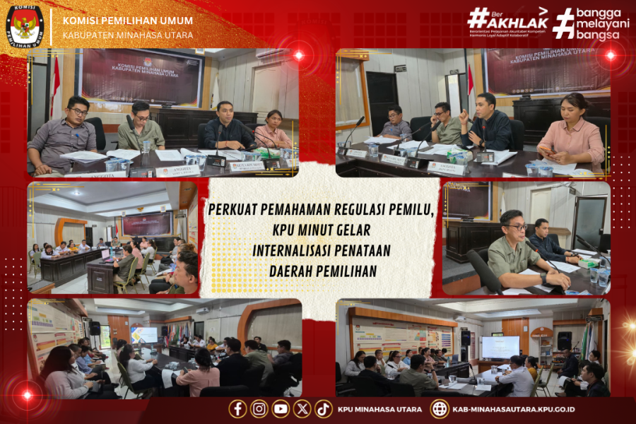 #TemanPemilih, Airmadidi — Komisi Pemilihan Umum Kabupaten Minahasa Utara (KPU Minut) melaksanakan kegiatan internalisasi terkait penerapan Peraturan KPU Nomor 6 Tahun 2022 tentang Penataan Daerah Pemilihan dan Alokasi Kursi Anggota DPRD Kabupaten/Kota dalam Pemilihan Umum pada kamis (5/3/2026). Kegiatan ini bertujuan untuk memperkuat pemahaman jajaran sekretariat dan pelaksana mengenai ketentuan teknis penataan daerah pemilihan (dapil) serta pengalokasian kursi DPRD. Kegiatan internalisasi tersebut dibuka oleh Anggota KPU Kabupaten Minahasa Utara Risky A. Pogaga. Dalam sambutannya, ia menyampaikan bahwa pemahaman yang komprehensif terhadap regulasi kepemiluan sangat penting bagi seluruh jajaran KPU, khususnya dalam mendukung pelaksanaan tahapan pemilu yang profesional, transparan, dan akuntabel. “Internalisasi ini penting agar seluruh jajaran sekretariat memiliki pemahaman yang sama terkait prinsip, mekanisme, serta ketentuan dalam penataan daerah pemilihan dan alokasi kursi DPRD sebagaimana diatur dalam PKPU Nomor 6 Tahun 2022,” ujarnya. Selanjutnya, materi internalisasi disampaikan oleh Anggota KPU Kabupaten Minahasa Utara Ibnu M. Dali sebagai Ketua Divisi Teknis Penyelenggara. Dalam pemaparannya, ia menjelaskan berbagai aspek penting dalam regulasi tersebut, mulai dari prinsip-prinsip penataan dapil, metode penghitungan alokasi kursi, hingga indikator yang digunakan dalam penyusunan daerah pemilihan. Ia juga menekankan bahwa penataan daerah pemilihan harus memperhatikan sejumlah prinsip dasar, seperti kesetaraan nilai suara, ketaatan pada sistem pemilu yang proporsional, proporsionalitas, integralitas wilayah, serta kesinambungan dengan pemilu sebelumnya. Dalam Internalisasi ini kemudian dilakukan Simulasi terkait Penyusunan Rancangan Daerah Pemilihan yang berbeda dari Daerah Pemilihan Tahun 2024 sebagai bahan pertimbangan yang dapat digunakan pada Penyusunan Daerah Pemilihan pada Pemilihan yang akan datang. Kegiatan internalisasi ini turut dihadiri oleh Anggota KPU Kabupaten Minahasa Utara Hedriyanto K. Jacob dan Ireine Buyung, Sekretaris KPU Kabupaten Minahasa Utara Chylvia C. Sondakh, para Kepala Subbagian, serta seluruh staf pelaksana di lingkungan Sekretariat KPU Kabupaten Minahasa Utara. Melalui kegiatan ini diharapkan seluruh jajaran KPU Kabupaten Minahasa Utara semakin memahami secara mendalam ketentuan yang diatur dalam PKPU Nomor 6 Tahun 2022, sehingga dapat mendukung pelaksanaan tugas kelembagaan secara lebih optimal dalam penyelenggaraan pemilu yang demokratis dan berintegritas. #KPUMelayani
