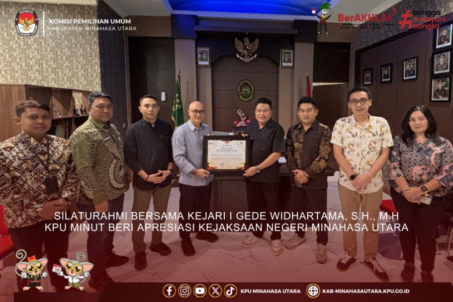 Komisi Pemilihan Umum Kabupaten Minahasa Utara (KPU Minut) melakukan audiensi dengan Kepala Kejaksaan Negeri Minahasa Utara I Gede Widhartama, S.H., M.H (16/5/2025) di Kantor Kejaksaan Negeri Minahasa Utara.