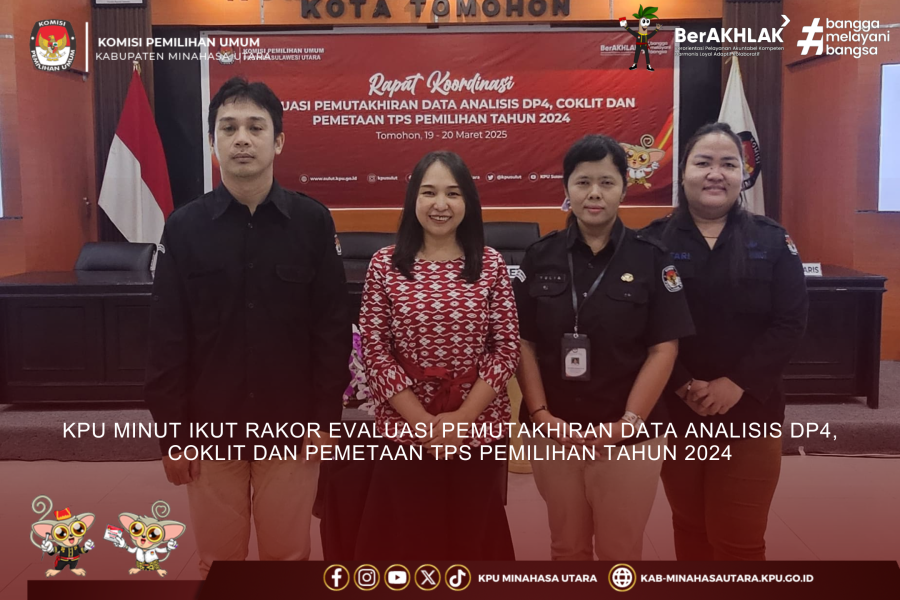 KPU Minut menghadiri Rapat Koordinasi Evaluasi Pemutakhiran Data Analisis DP4, Coklit, dan pemetaan TPS Pemilihan Tahun 2024 yang diselenggarakan oleh KPU Provinsi Sulawesi Utara di Aula KPU Kota Tomohon pada tanggal 19-20 Maret 2025. Turut hadir dari KPU Minut yaitu Ketua Divisi Rendatin Ireine Buyung, Kasubag Rendatin Yulia Widiastuti serta Operator Untari A. Rany dan Harry Waney. Dalam rakor hadir Lurah Paslaten Satu Roky K.Warung, Lurah Walian Dua Marlon Taroreh yang memberikan catatan evaluasi dalam tahapan Coklit dan narasumber Demisioner KPU Provinsi Sulawesi Selatan Ulisimin yang menyampaikan ulasan terkait pemutakhiran data pemilih. “Evaluasi harus dilaksanakan agar mendapatkan saran dan masukan dari peserta khususnya dalam tahapan mutarlih untuk kualitas data yang lebih baik pada Pemilihan yang akan datang.” Tegas Poluan dalam arahannya saat membuka kegiatan. Seluruh peserta pro aktif memberikan saran, masukan, bahkan hal-hal yang terjadi selama tahapan pemutakhiran data pemilih berlangsung yang semuanya akan ditulis dalam Buku Perjalanan Data pemilih oleh KPU Provinsi Sulawesi Utara.