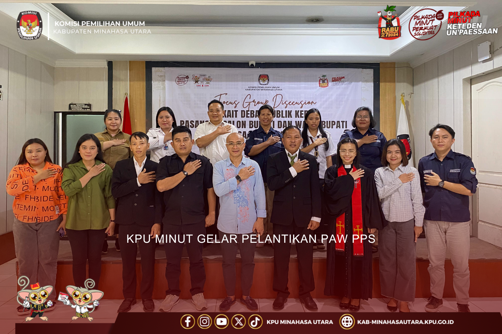 Hadir Ketua KPU Minut Hendra Lumanauw bersama Anggota KPU Minut Risky Pogaga, dan Hedriyanto Kusno Jacob, serta Sekretaris KPU Minut, Ariesto J. Matantu.