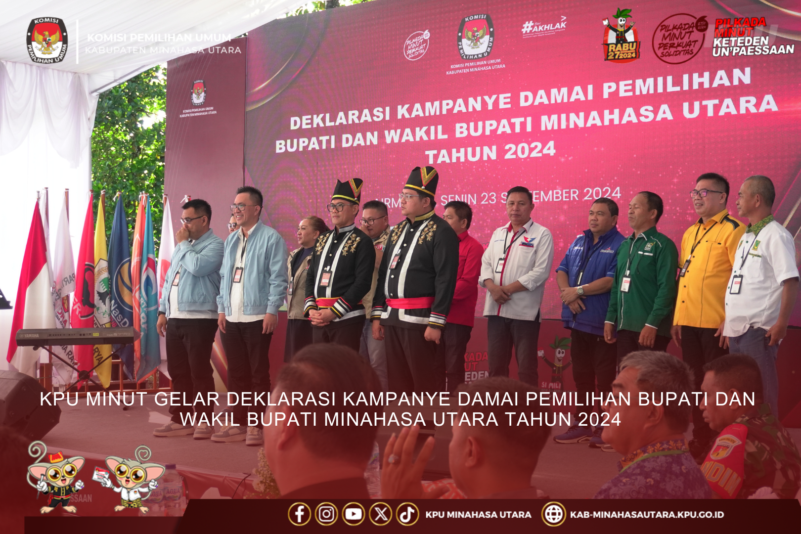 Deklarasi Kampanye Damai Pemilihan Bupati dan Wakil Bupati Minahasa Utara Tahun 2024 dilaksanakan dalam rangka momentum yang penting bagi sesama anak bangsa, sesama peserta Pilkada yang bersama-sama telah meneguhkan niat dan menyatakan sikap untuk bersama-sama berkolaborasi, bergandengan tangan menyelenggarakan Pemilihan Bupati dan Wakil Bupati Minahasa Utara Tahun 2024.