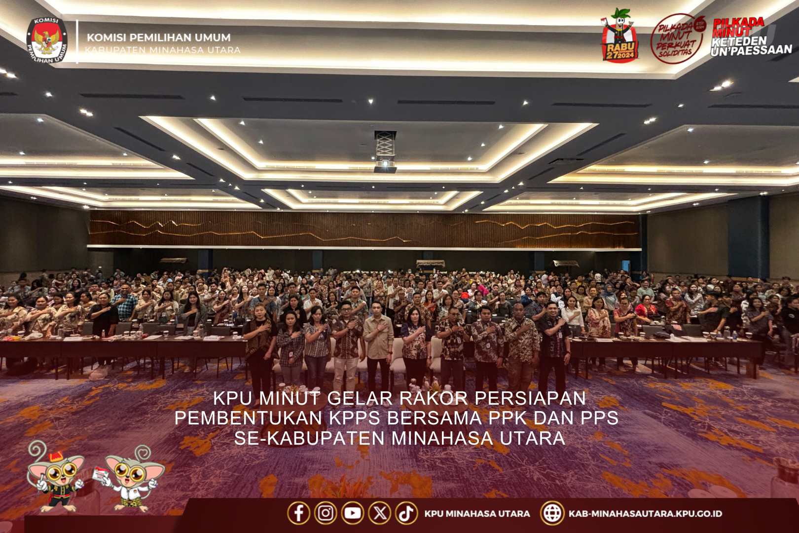 Komisi Pemilihan Umum (KPU) Kabupaten Minahasa Utara mengikuti Rapat Koordinasi (Rakor) persiapan penetapan Daftar Pemilih Tetap (DPT) dan pelayanan pemilih pindahan pada Pemilihan Kepala Daerah (Pilkada) 2024. Acara ini berlangsung selama lima hari, mulai tanggal 11 hingga 15 September 2024 di Batam, Kepulauan Riau. Rakor ini dibuka oleh Betty Epsilon Idroos, Ketua Divisi Data dan Informasi KPU RI, yang menekankan pentingnya persiapan akhir sebelum penetapan DPT. Dalam sambutannya, Betty menyampaikan rasa syukur karena semua peserta dapat hadir dalam rakor penting ini. “Kita diberikan kesehatan untuk menyelesaikan tahapan penting, yaitu persiapan terakhir penetapan Daftar Pemilih Tetap (DPT) dan juga persiapan layanan pemilih pindahan untuk Pilkada 2024,” ujarnya. Betty juga mengapresiasi kerja keras KPU kabupaten/kota dalam menyelesaikan penetapan Daftar Pemilih Sementara (DPS) pada Agustus 2024, baik di tingkat kabupaten/kota maupun provinsi. Selanjutnya, proses rekapitulasi dan penetapan DPT di tingkat kabupaten/kota akan dilaksanakan pada tanggal 14 hingga 23 September 2024. Setelah pembukaan, kegiatan dilanjutkan dengan pembahasan teknis terkait penyelesaian data ganda dan data invalid yang ditemukan selama proses pemutakhiran. Penyelesaian masalah ini menjadi fokus utama dalam rakor, dengan tujuan memastikan bahwa tidak ada pemilih yang terdaftar lebih dari sekali atau memiliki informasi yang salah. Pemutakhiran ini dilakukan melalui koordinasi intensif dengan Dinas Kependudukan dan Pencatatan Sipil (Disdukcapil) serta pengawasan Bawaslu. Betty menegaskan, "Penyelesaian data ganda dan invalid adalah langkah penting dalam memastikan daftar pemilih yang akurat dan kredibel. Ini akan menjadi dasar yang kuat bagi penyelenggaraan Pilkada 2024 yang berkualitas dan adil." Dengan koordinasi yang intens antara KPU, Bawaslu, dan Disdukcapil, diharapkan bahwa seluruh data pemilih yang bermasalah dapat diselesaikan sebelum penetapan DPT. Kegiatan ini juga membahas strategi untuk layanan pemilih pindahan, memastikan bahwa mereka yang pindah domisili tetap dapat menggunakan hak pilihnya dengan baik. Peserta rakor terdiri dari anggota KPU yang membidangi data dan informasi serta admin/operator Sidalih seluruh Indonesia.KPU Kabupaten Minahasa Utara dihadiri oleh Ireine Buyung selaku anggota KPU Kabupaten Minahasa Utara didampingi operator Sidalih Harry Waney