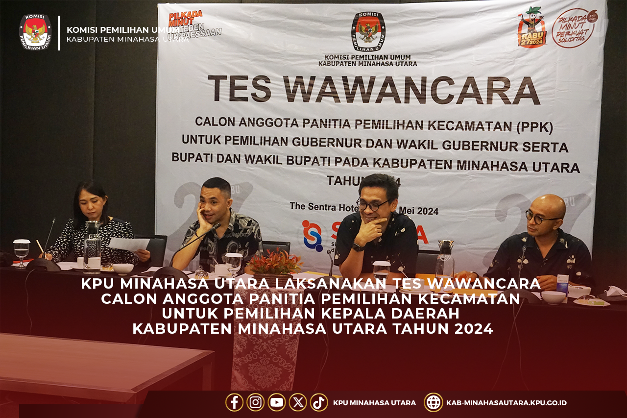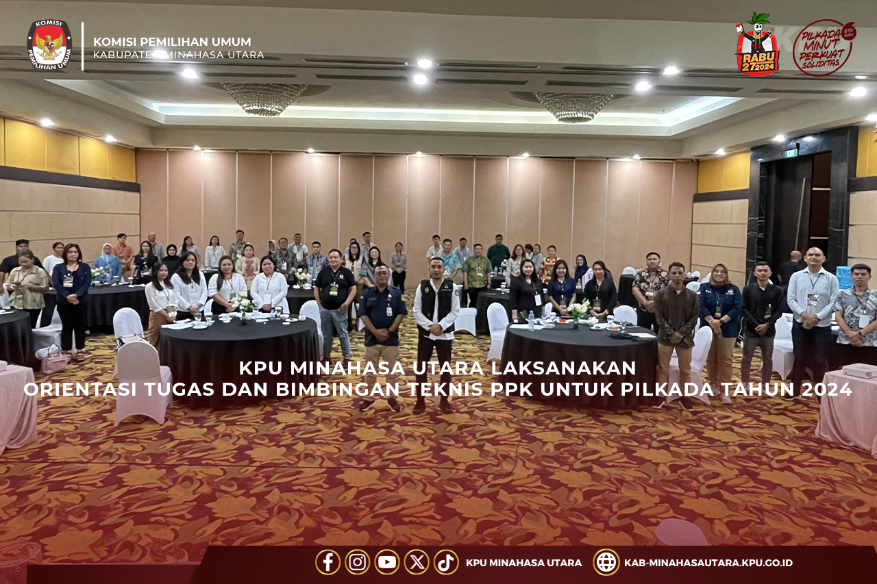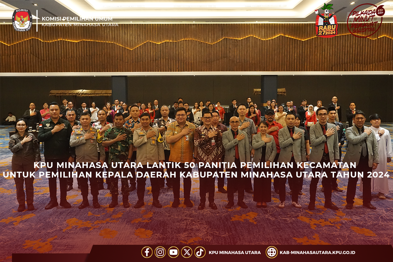 Kamis, 16 Mei 2024 KPU Minahasa Utara melantik 50 Anggota Panitia Pemilihan Kecamatan (PPK) untuk Pemilihan Kepala Daerah Kabupaten Minahasa Utara Tahun 2024 yang dilaksanakan di The Sentra Hotel, Kalawat.
