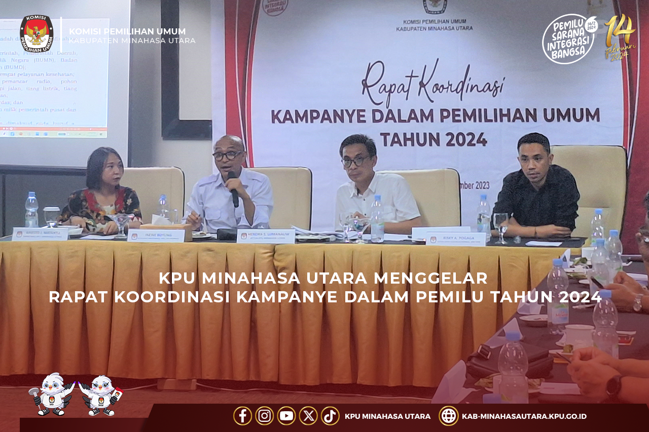 Komisi Pemilihan Umum Kabupaten Minahasa Utara (KPU Minut) mengikuti Rapat Koordinasi (Rakor) distribusi dan pengamanan logistik serta pengelolaan keuangan Pemilu dan Pemilihan tahun 2024 yang digelar KPU Provinsi Sulawesi Utara, Kamis-Sabtu (23-25) November 2023), di Hotel Mercure, Minahasa.