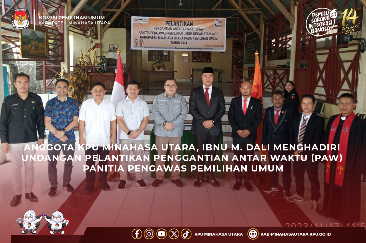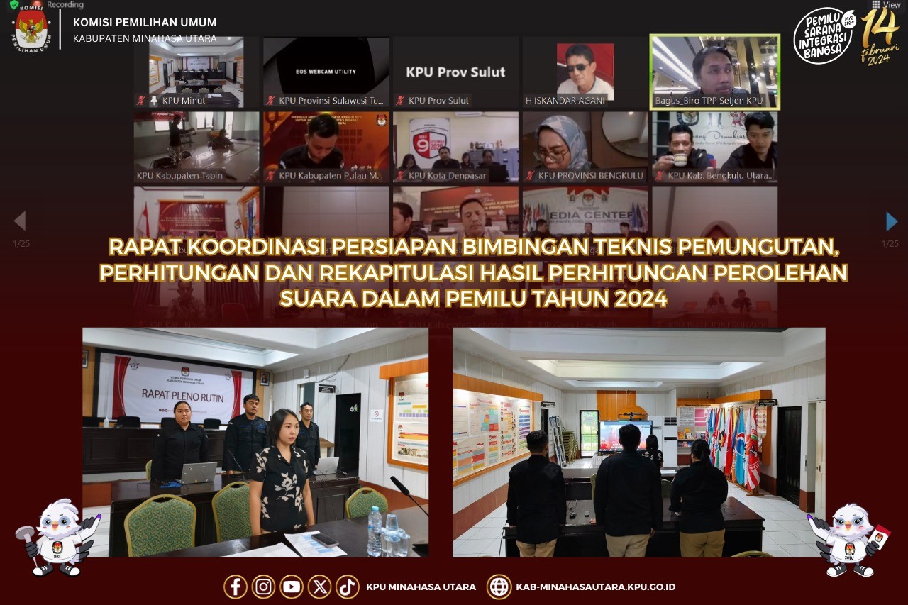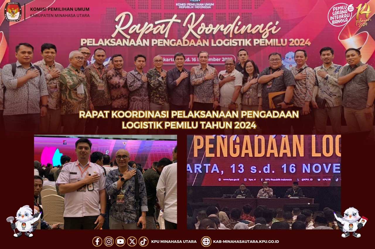 Ketua KPU Kabupaten Minahasa Utara, Hendra S. Lumanauw bersama Pejabat Pembuat Komitmen KPU Kabupaten Minahasa Utara, Paul Elizer Tuama mengikuti kegiatan Rapat Koordinasi Pelaksanaan Pengadaan Logistik Pemilu 2024 yang diselenggarakan KPU RI di Jakarta, Senin (13/11/2023) sampai dengan Kamis (16/11/2023).