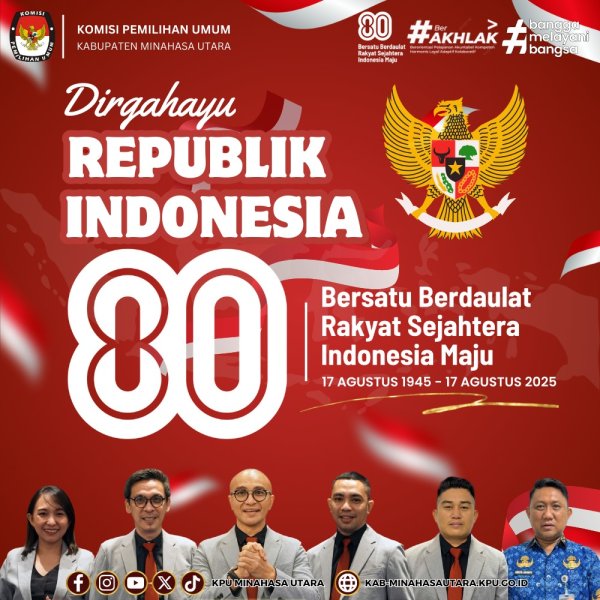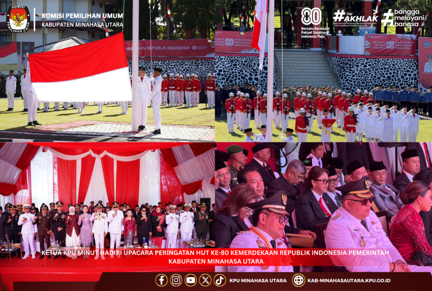 #TemanPemilih, Airmadidi - Dalam rangka memperingati Hari Ulang Tahun (HUT) ke-80 Kemerdekaan Republik Indonesia, Komisi Pemilihan Umum (KPU) Kabupaten Minahasa Utara menggelar Upacara Bendera di halaman kantor KPU Minahasa Utara, Minggu (17/08/2025).