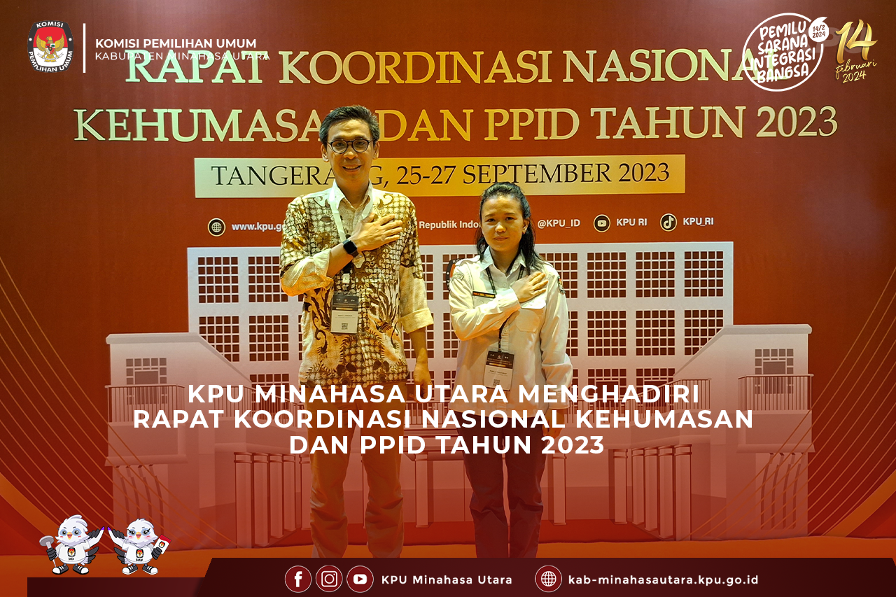Tanggerang – Ketua Divisi Sosdiklih Parmas dan SDM KPU Kabupaten Minahasa Utara, Risky A. Pogaga bersama dengan Staf Pelaksana menghadiri Rapat Koordinasi Nasional Kehumasan dan PPID Tahun 2023, di Kota Tangerang, Senin-Rabu (25-27/9/2023).