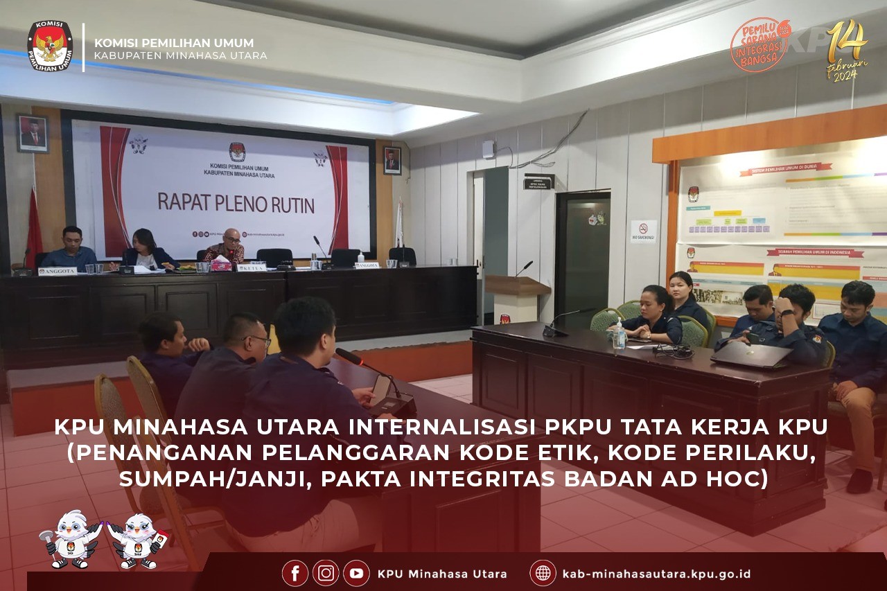 Kamis (14/09) KPU Minahasa Utara gelar Bimbingan Teknis penggunaan Sistem Informasi Pertanggung Jawaban Badan Adhoc (SITAB) bersama seluruh Sekretaris PPK dan operator se-Minahasa Utara. Dalam arahan sekaligus membuka kegiatan, Ketua KPU Minahasa Utara, Hendra Lumanauw MA menjelaskan, kerja tahapan Pemilu semakin padat. “Baik itu tahapan DCS, DPTb juga program sosialisasi dan pendidikan pemilih seperti Rabu Bacirita Pemilu, perlu didukung jajaran Sekretariat PPK Kecamatan hingga PPS,” tandas Hendra. Untuk semua tahapan itu, lanjut Hendra, perlu kesiapan pertanggungjawaban administrasi yang baik yang tersistem. “SITAB ini merupakan produk kebijakan dari KPU yang untuk dijalankan dan terintegrasi. Yang berfungsi sebagai sistem kendali sekaligus sistem monitoring kontrol lembaga yang berangkat dari asas akuntabilitas dalam pengelolaan administrasi keuangan penyelengaraan pemilu,” papar Hendra. Dalam kesempatan itu, Ariesto Matantu SH MH selaku sekretaris KPU Minut juga memaparkan, SITAB harus dibimtek sekaligus juga evaluasi terhadap kerja teman-teman sekretariat PPK. “ Ada 3 fungsi harus dilaksanakan yaitu fungsi administratif, strategis dan fungsi politik yang harus dipahami dalam dinamika di wilayah kerja kita. Agar bisa menjaga netralitas dan menjaga dalam keseluruhan tugas-tugas kesekretariatan demi kelancaran tahapan-tahapan yang sudah semakin padat,” jelas Ariesto. Dalam Bimtek ini, penjelasan tatacara menjalankan dan pe-upload-an dari Evianty Layuck sebagai Operator SITAB KPU MINUT.