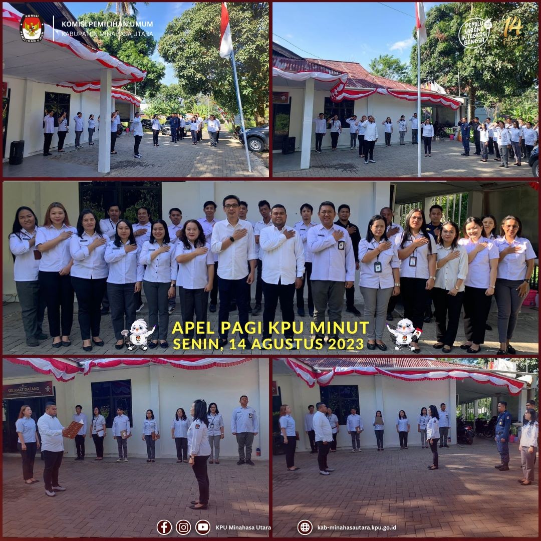 Airmadidi - Komisi Pemilihan Umum Kabupaten Minahasa Utara (KPU Minut) menggelar Apel Pagi, Senin (14/8/2023), bertempat di halaman Kantor KPU Minut.