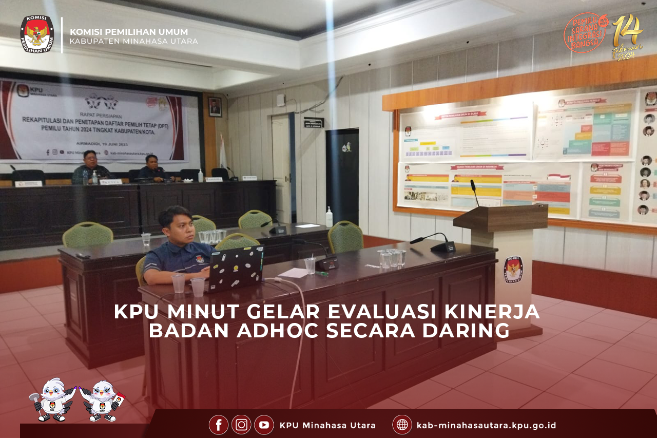 KPU Minahasa Utara menggelar kegiatan Evaluasi Kinerja Badan Adhoc Secara Daring (20/6/2023).