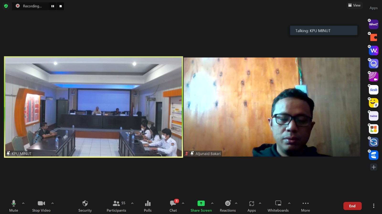 Kamis (02/03) KPU Minahasa Utara melaksanakan Rakor Evaluasi Coklit Pemilu Serentak Tahun 2024 secara daring. Rakor ini dihadiri oleh Panitia Pemilihan Kecamatan (PPK) dan Panitia Pengawas Kecamatan (Panwascam) Se-Minahasa Utara. “ Kita semua selaku penyelenggara Pemilu memiliki tujuan yang sama yaitu mewujudkan Pemilu yang sukses, oleh sebab itu rakor ini perlu dilaksanakan untuk persamaan persepsi antar sesama Penyelenggara Pemilu.” Jelas Hendra Lumanauw, Ketua KPU Minahasa Utara saat membuka acara. Dalam rakor disampaikan oleh Ketua Divisi Perencanaan Data dan Informasi KPU Minahasa Utara progress Coklit setiap Kecamatan dan sampai saat ini memasuki Minggu III Tahapan Coklit KPU Minahasa Utara telah mencapai progress 85,53 % dari jumlah DP4 172.553 pemilih yang di Coklit yaitu Kecamatan Kema 74,50 %, Kauditan 40,42 %, Airmadidi 72,69 %, Kalawat 28,96 %, Dimembe 57,97 %, Talawaan 44,10 %, Likupang Selatan 97,08 %, Likupang Timur 43,39 %, Likupang Barat 82,01 %, dan Wori 62,25 %. Dalam giat itu, tampak jajaran PPK dan Panwascam aktif mengikuti dan siap terus untuk membangun sinergi dalam bentuk komunikasi dan koordinasi. Hasil dari pengawasan melekat serta uji sampling dalam patroli Coklit oleh Bawaslu Minahasa Utara dalam rangka memastikan proses Coklit di lapangan oleh Pantarlih disampaikan sudah sesuai dengan tata cara aturan yang berlaku serta pengawasan oleh jajaran Pengawas di lapangan juga berjalan secara baik bersinergis antara PPK, PPS dan Pantarlih. Narasumber pada kegiatan hari ini adalah Anggota Bawaslu Aljunaid Bakari yang menyampaikan hasil pengawasan selama Tahapan Coklit.