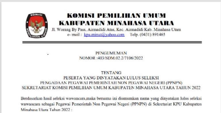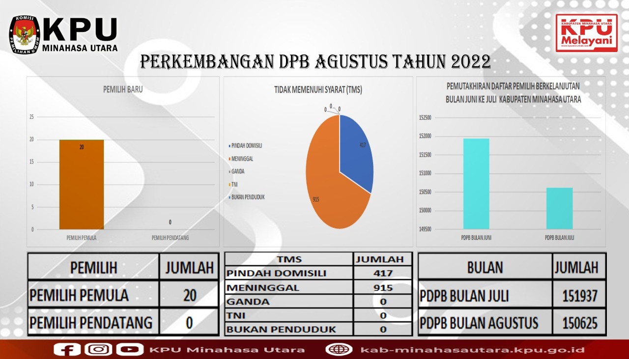 Komisi Pemilihan Umum (KPU) Minahasa Utara (Minut) menggelar Rakor dan Rekapitulasi PDPB Bulan Mei Tahun 2022. Rekapitulasi Data Pemilih Berkelanjutan KPU Minut terdapat Pemilih pindah masuk 9 (sembilan) pemilih,Pemilih pemula 93 (sembilan puluh tiga) pemilih, pindah keluar 18 (delapan belas) dan Meninggal 40 (empat puluh) pemilih,sehingga total pemilih pada bulan ini adalah 152.927 (seratus lima puluh dua ribu sembilan ratus dua puluh tujuh) pemilih.