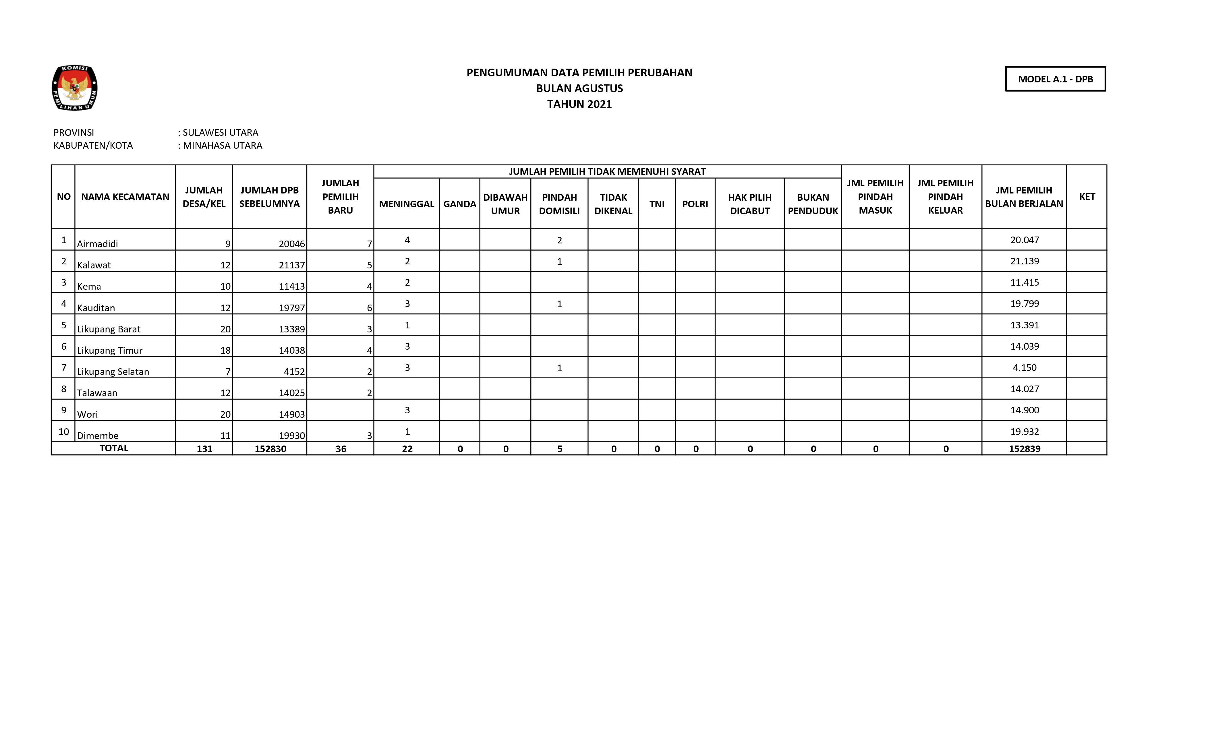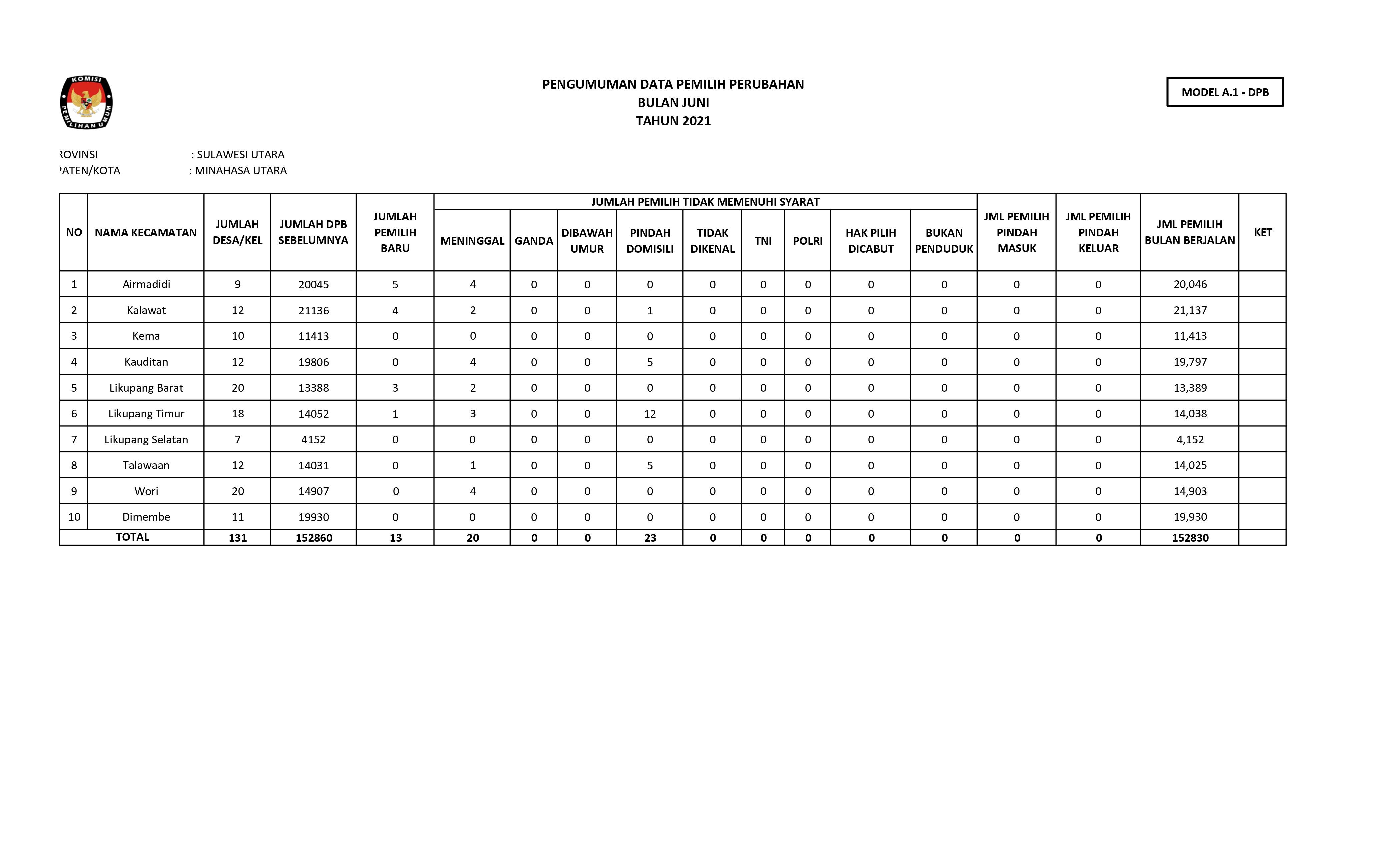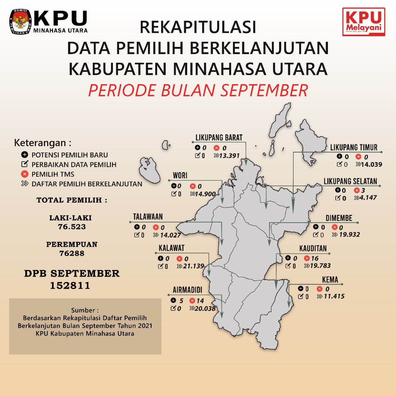 KPU Kabupaten Minahasa Utara telah menetapkan Pemutakhiran Data Pemilih Berkelanjutan Bulan Oktober tahun 2021 dan dituangkan dalam bentuk Berita Acara.