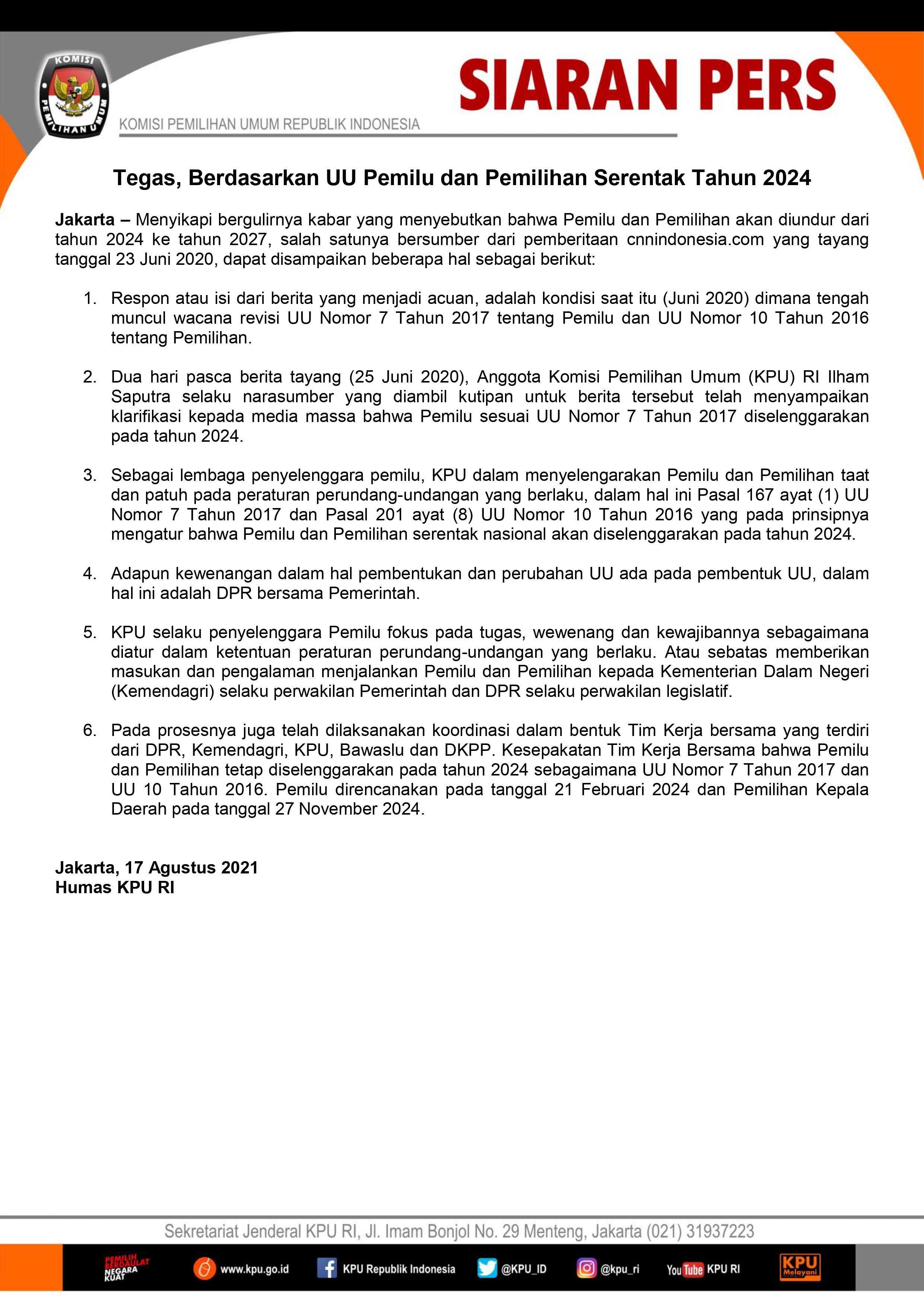 Menyikapi bergulirnya kabar yang menyebutkan bahwa Pemilu dan Pemilihan akan diundur dari tahun 2024 ke tahun 2027