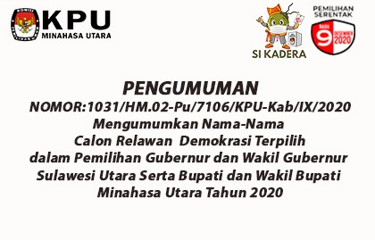 Komisi Pemilihan Umum Kabupaten Minahasa Utara Mengumumkan Calon Relawan Terpilih dalam Pemilihan Gubernur dan Wakil Gubernur Serta Bupati dan Wakil Bupati Minahasa Utara Tahun 2020