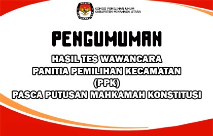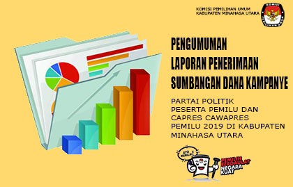 Sebagaimana diatur dalam Peraturan Komisi Pemilihan Umum (PKPU) Nomor 32 Tahun 2018 tentang Perubahan Kedua Atas PKPU Nomor 7 Tahun 2017 Tentang Tahapan, Program, dan Jadwal Penyelenggaraan Pemilihan Umum Tahun 2019 dan PKPU Nomor 34 Tahun 2018 tentang Perubahan Kedua Atas Peraturan Komisi Pemilihan Umum Nomor 24 tentang Dana Kampanye Pemilihan Umum, berikut ini kami sampaikan Pengumuman LaporanPenerimaan Sumbangan Dana Kampanye Partai Politik Peserta Pemilu dan Capres/Cawapres pemilu 2019 di Kabupaten Minahasa Utara.
