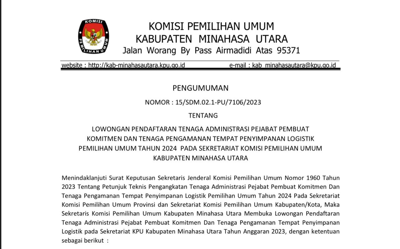Informasi lebih lanjut dapat menghubungi helpdesk pencalonan KPU Kabupaten Minahasa Utara